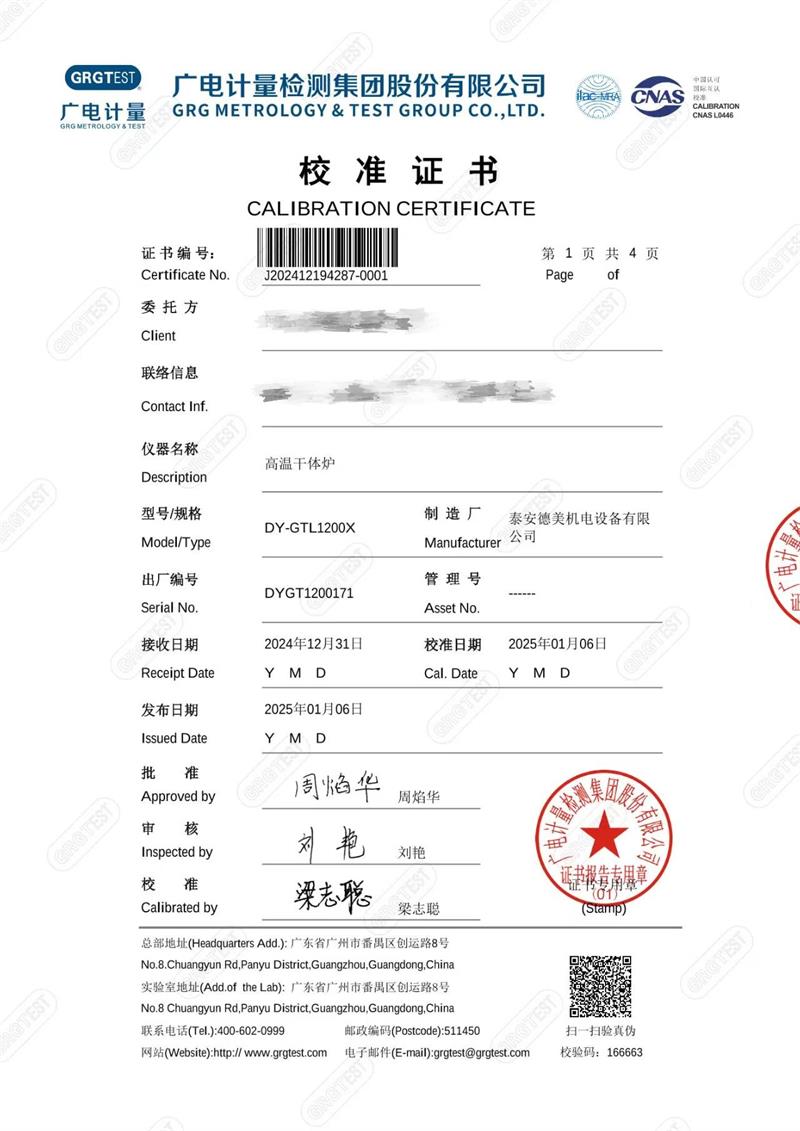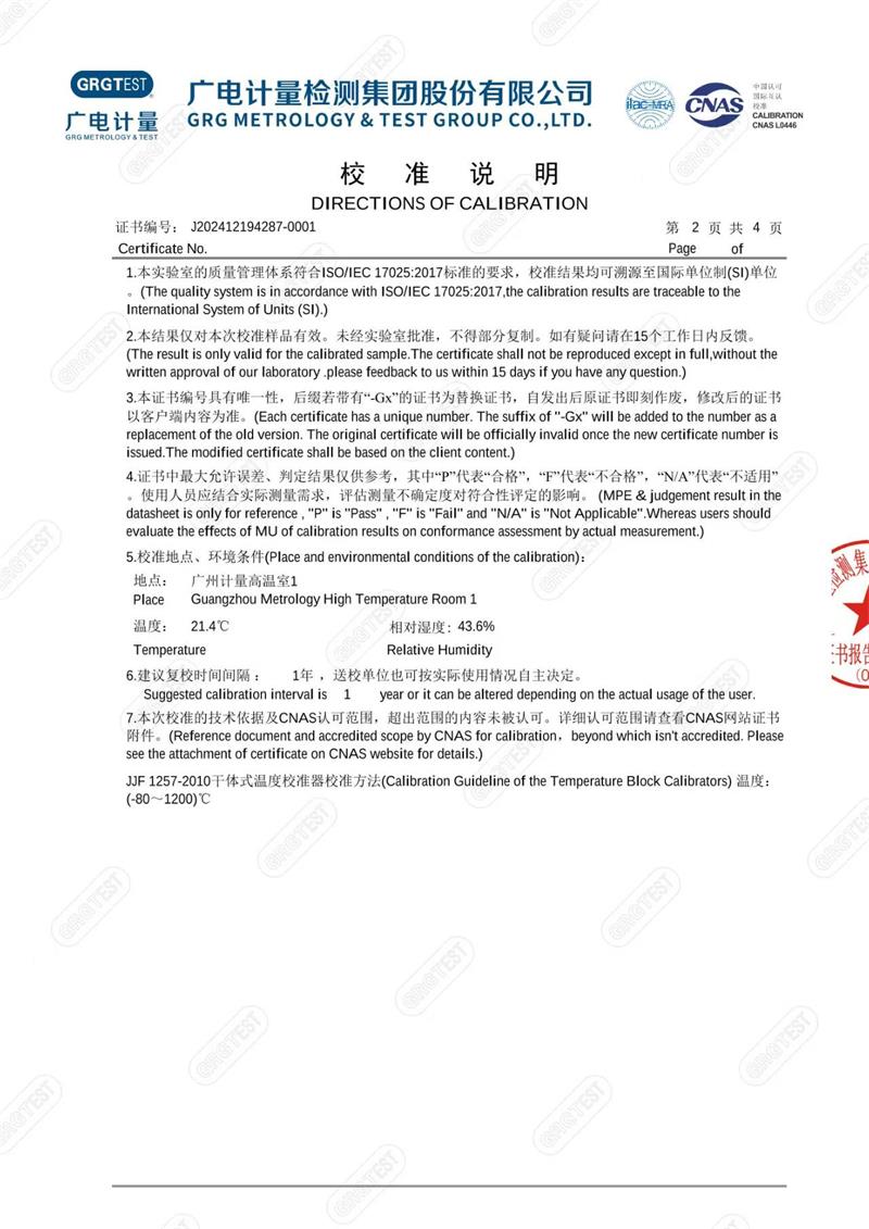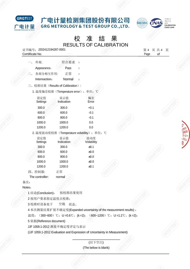 高溫干體爐(300-1200℃)校準(zhǔn)證書 2025-1-13 本文被閱讀 6765 次