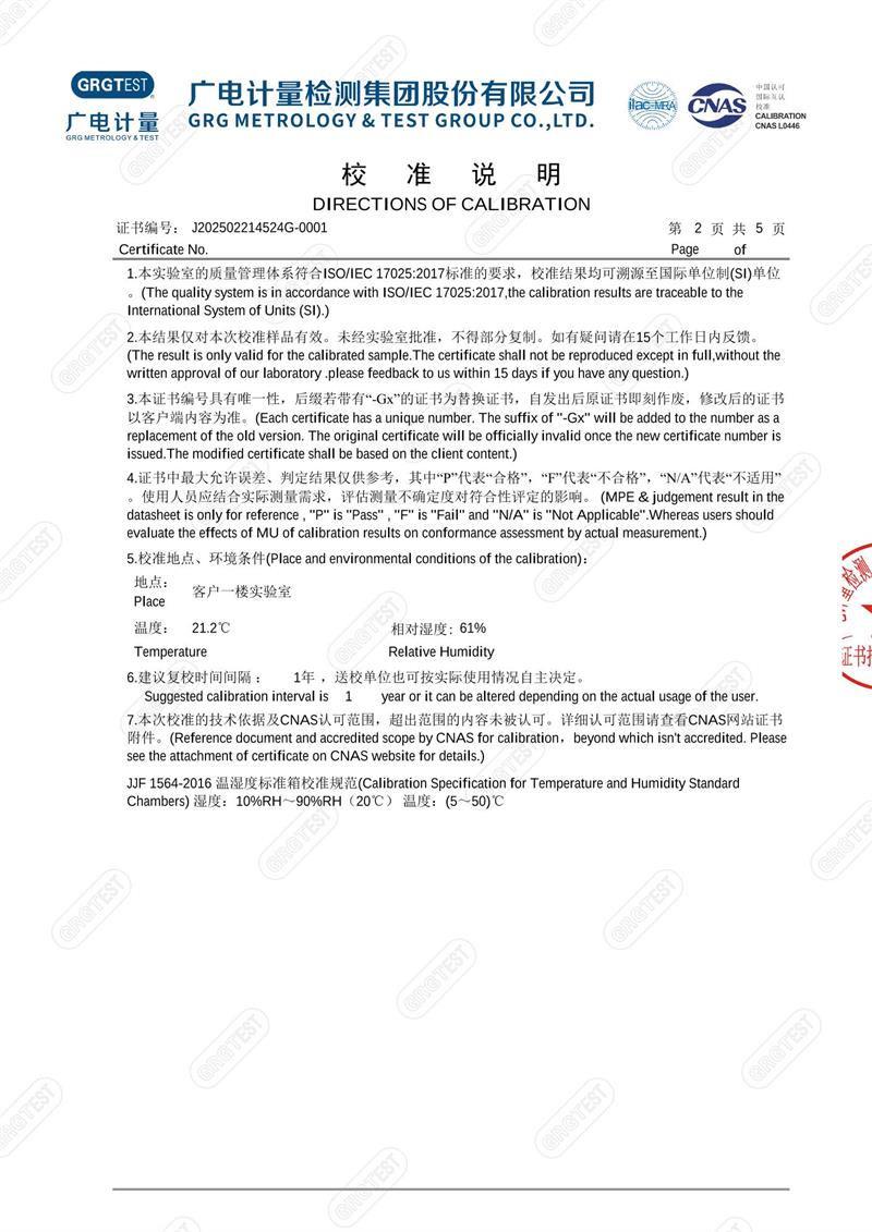 溫濕度檢定箱18274(-5~65℃)校準證書 2025-4-18 本文被閱讀 3822 次