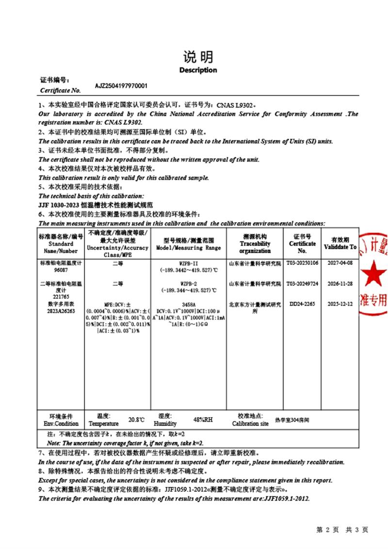 | 上一條:干體溫度校驗爐(300-1200℃)校準(zhǔn)證書 | 下一條:低溫干體爐-校準(zhǔn)證書 |