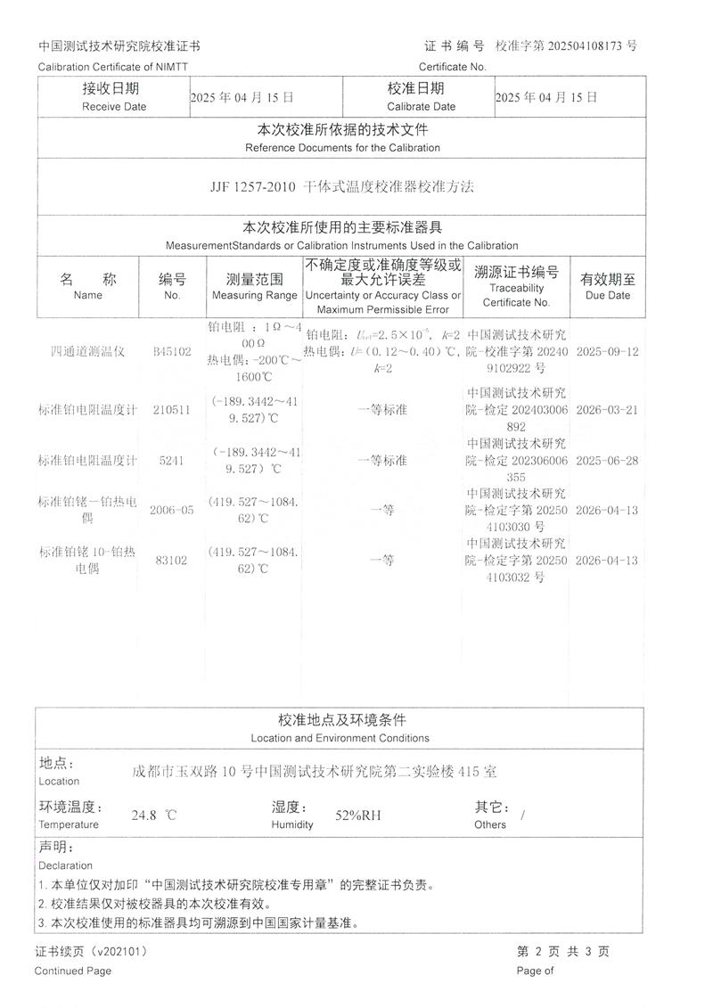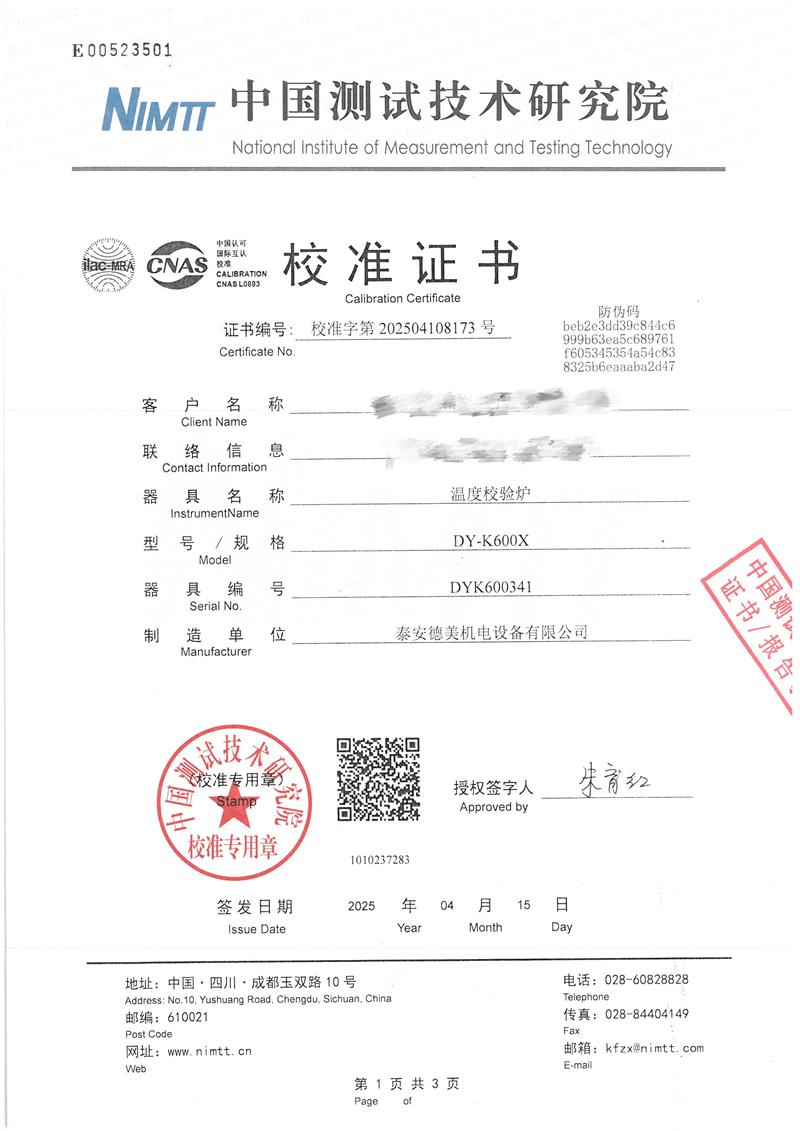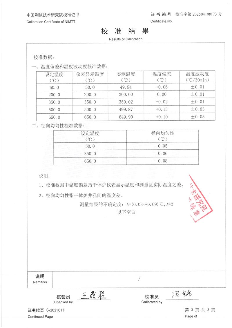 溫度校驗爐(50~650℃)校準證書 2025-4-30 本文被閱讀 3887 次