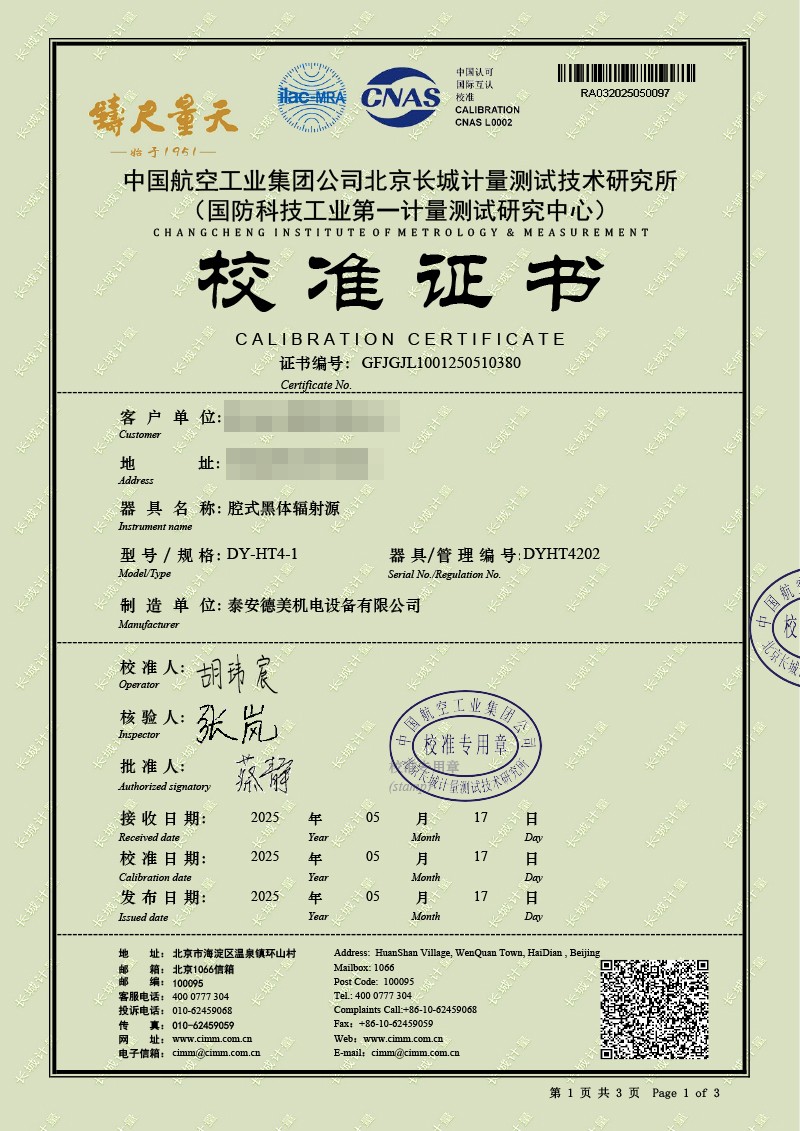 腔式黑體輻射源(800-1450℃)校準證書 2025-5-28 本文被閱讀 4005 次