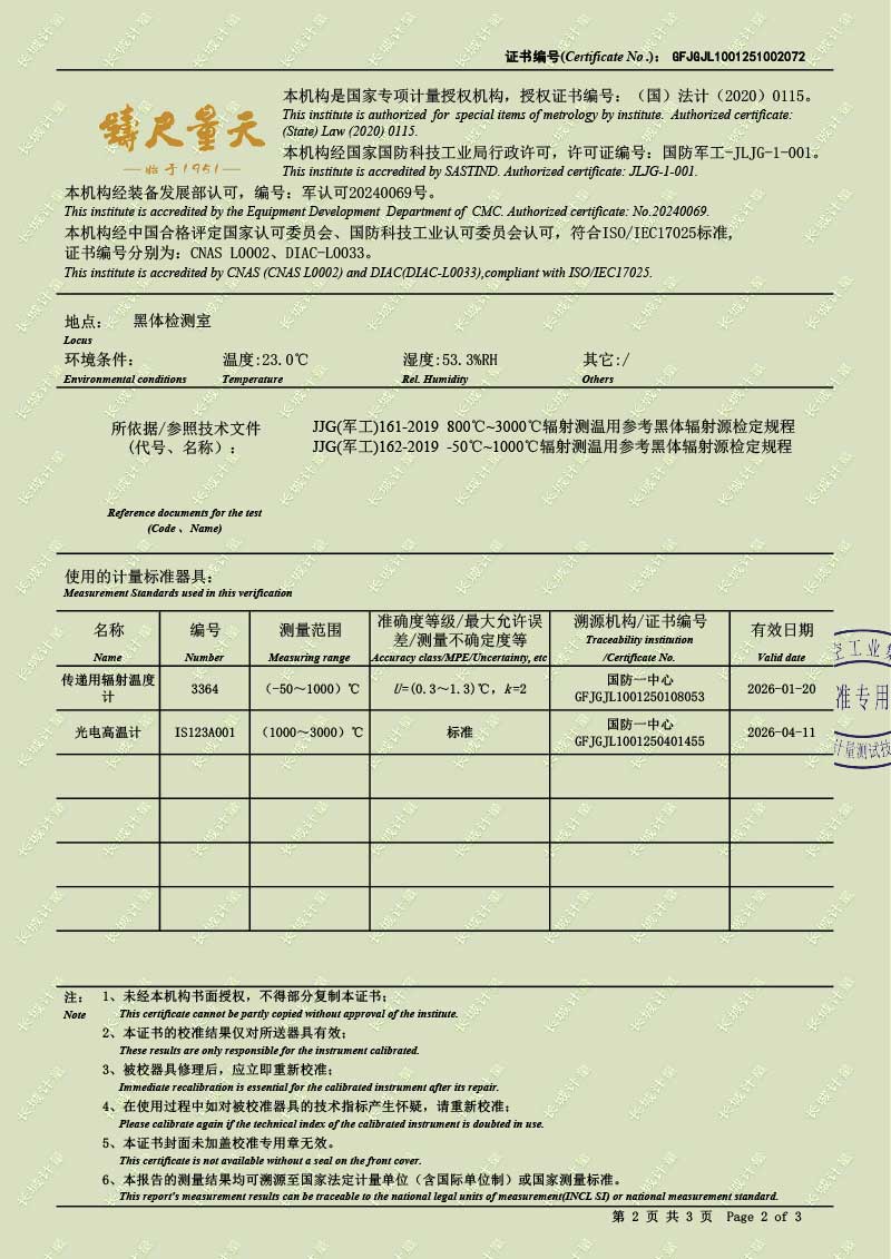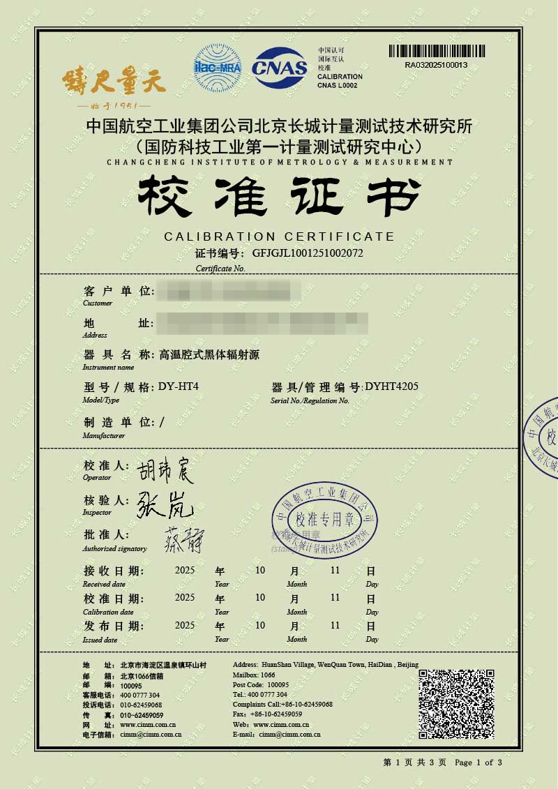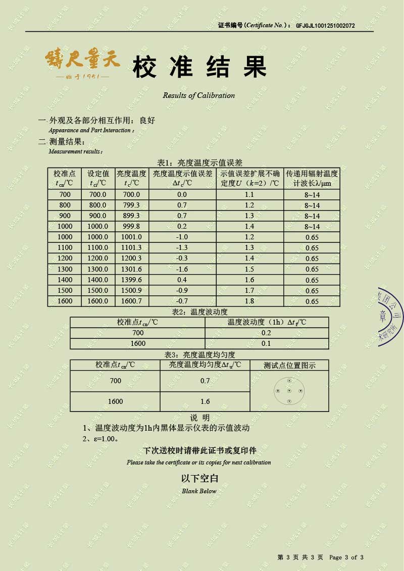 | 上一條:低溫液槽式黑體爐(-40-100℃)校準(zhǔn)證書 | 下一條:中溫面源黑體爐-校準(zhǔn)證書 |