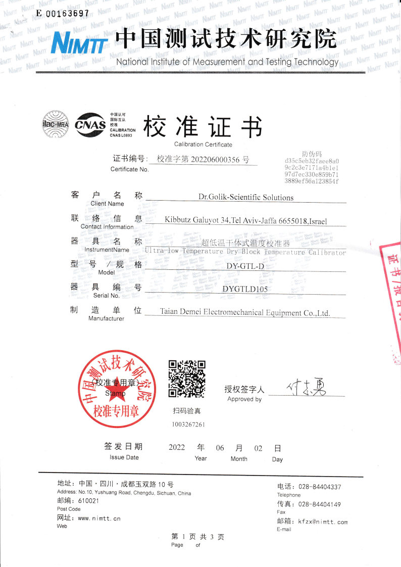 以色列-超低溫干體爐 2022-6-7 本文被閱讀 15184 次