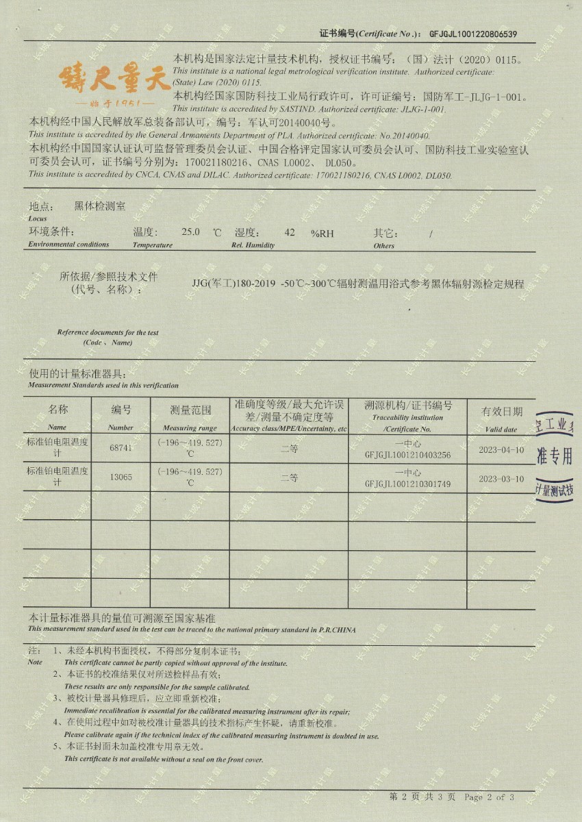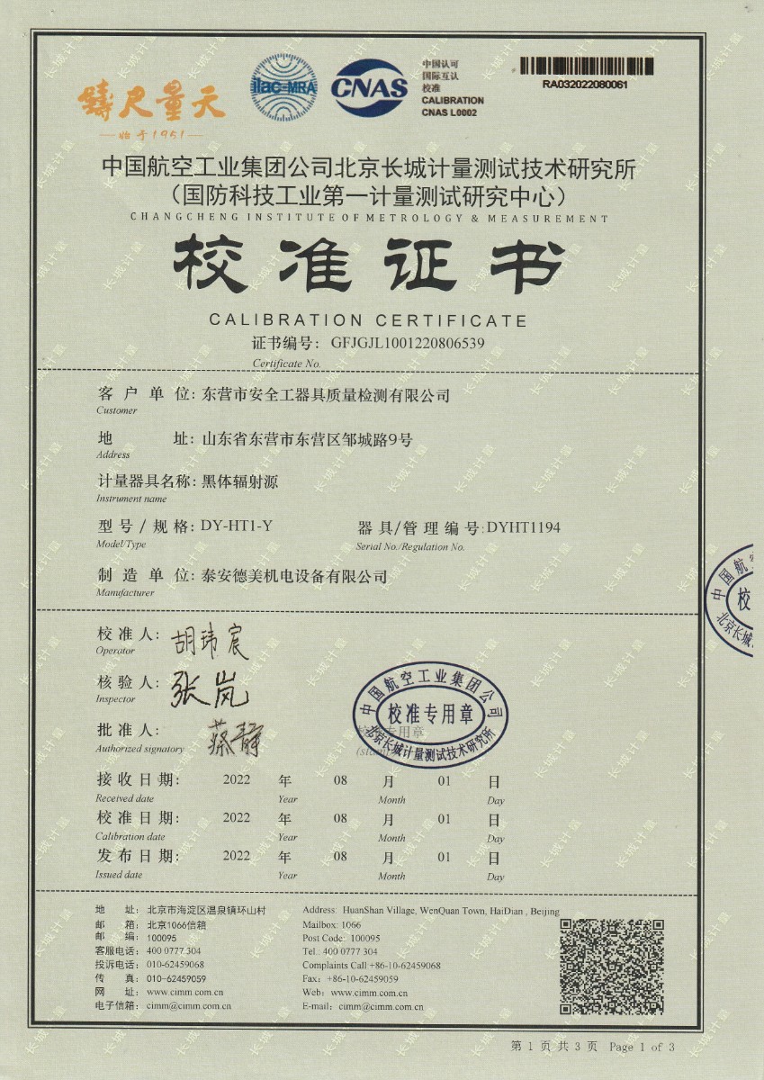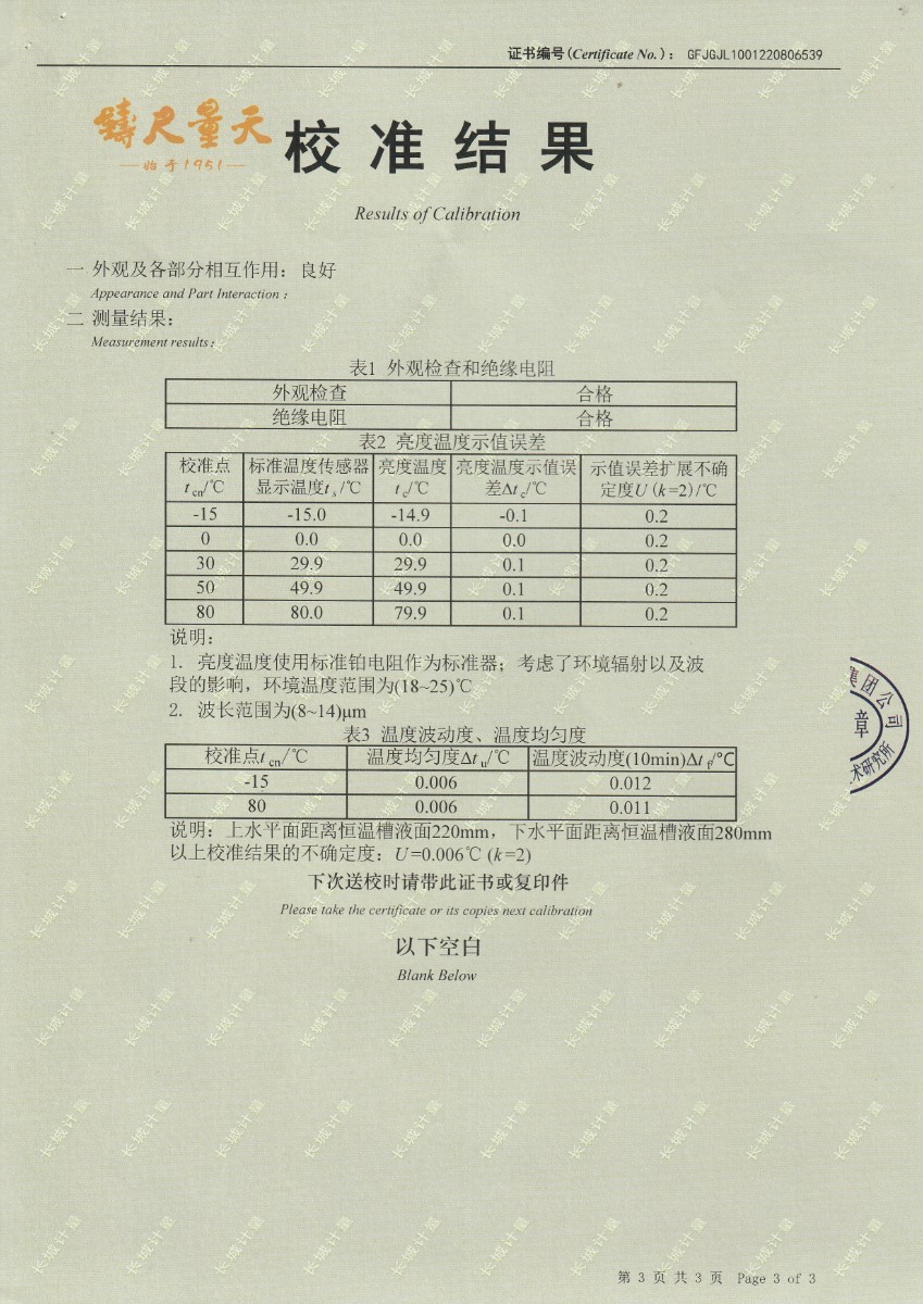 | 上一條:東營市安全工器具質(zhì)量檢測有限公司-黑體輻射源DY-HT2 | 下一條:中溫面源黑體爐-校準(zhǔn)證書 |