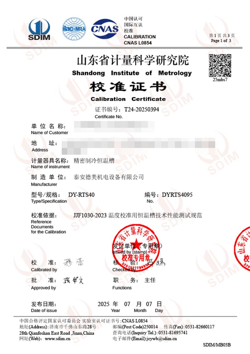 制冷恒溫槽(-40-100℃)校準(zhǔn)證書 2025-7-10 本文被閱讀 4072 次