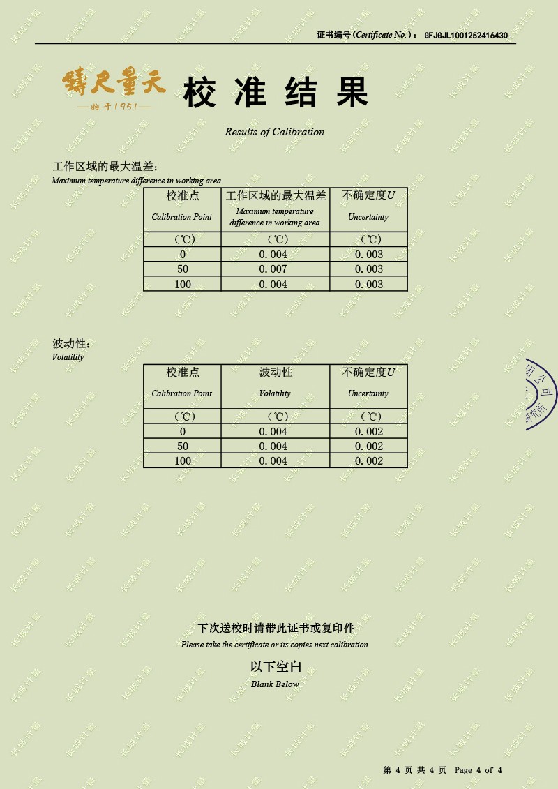 高精度制冷恒溫槽(0~100℃)-校準(zhǔn)證書 2025-12-19 本文被閱讀 1231 次