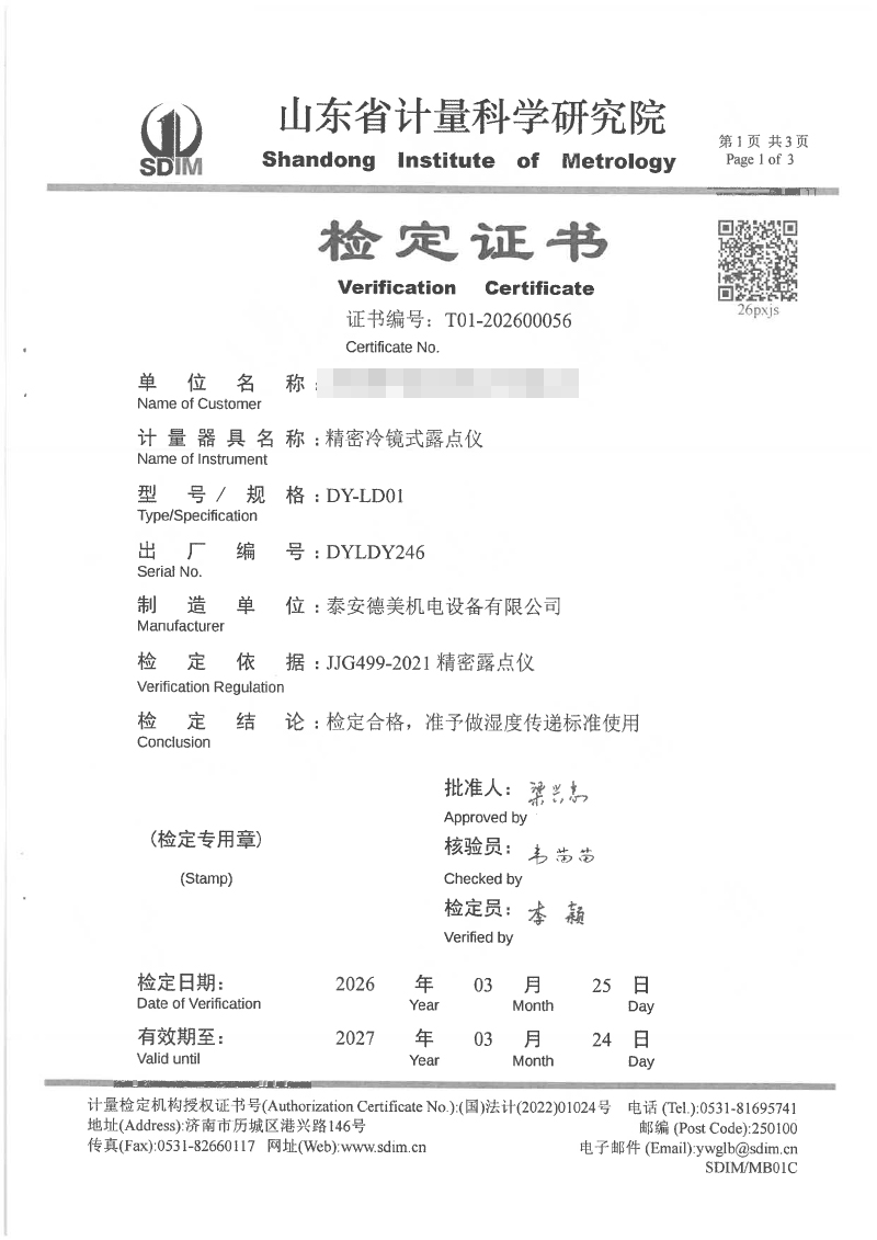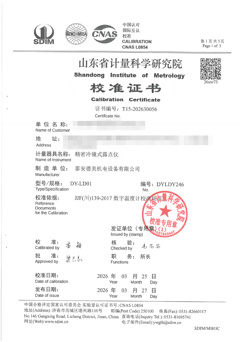 露點(diǎn)儀校準(zhǔn)、檢定證書(shū) 2026-4-7 本文被閱讀 158 次