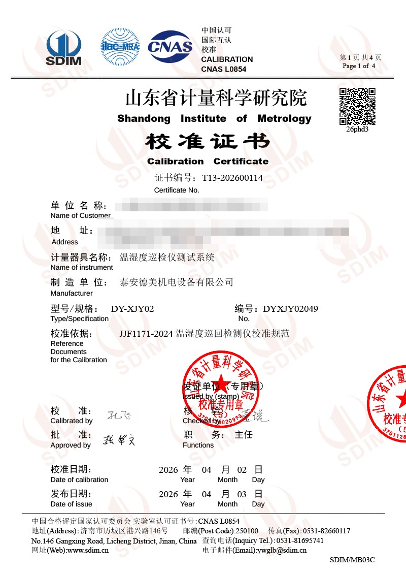 溫濕度巡檢儀測試系統(tǒng)-校準(zhǔn)證書 2026-4-7 本文被閱讀 195 次