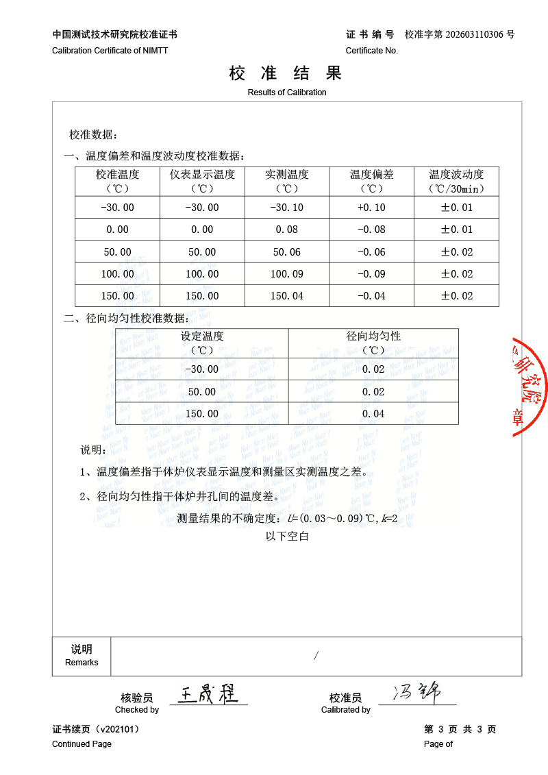 低溫干體爐-校準(zhǔn)證書 2026-4-7 本文被閱讀 308 次