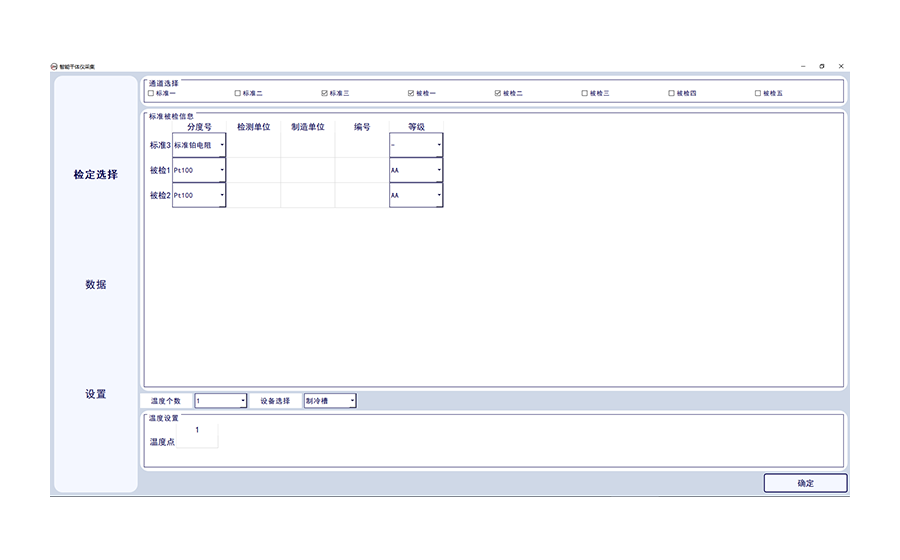 1.可實現(xiàn)設備的8通道的任意檢定選擇,可選擇通道的分度號類型,及被測傳感器的檢測單位、制造單位,傳感器編號及等級