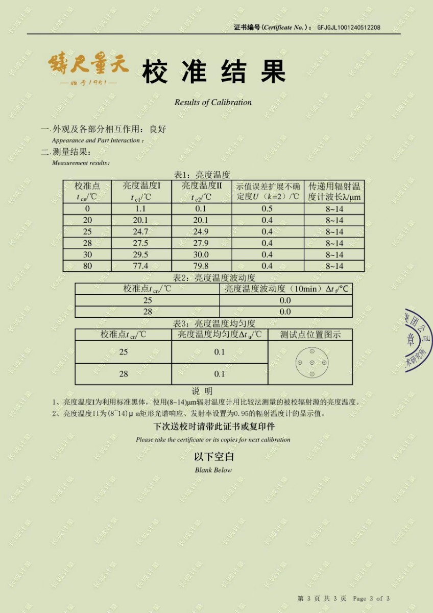 面源黑體爐校準證書 2024-5-31 本文被閱讀 7534 次