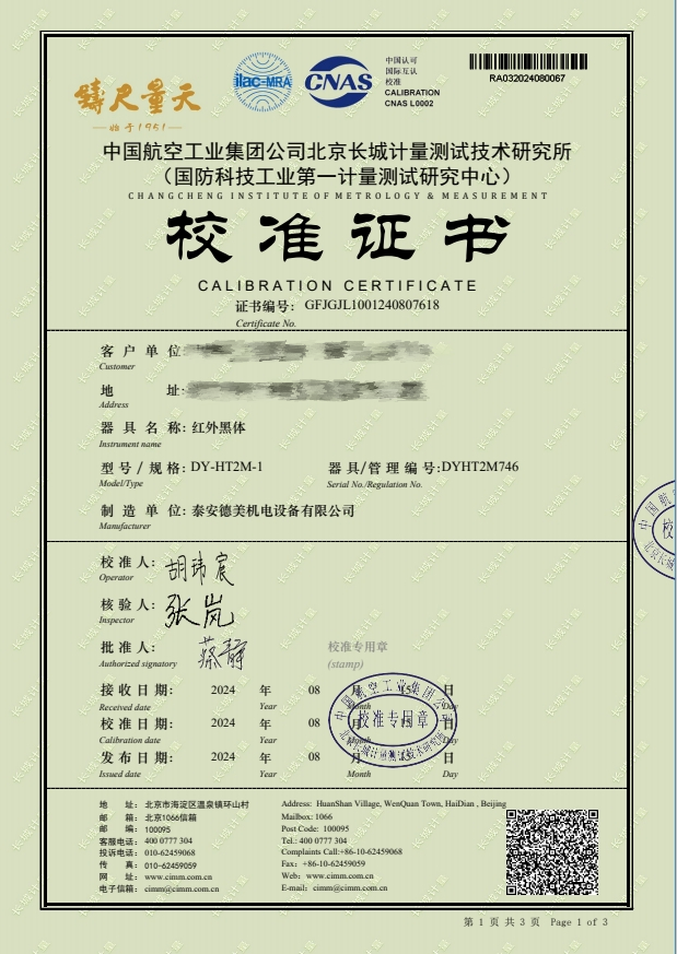 | 上一條:黑體輻射源-(-50~80(100℃))校準(zhǔn)證書 | 下一條:中溫面源黑體爐-校準(zhǔn)證書 |