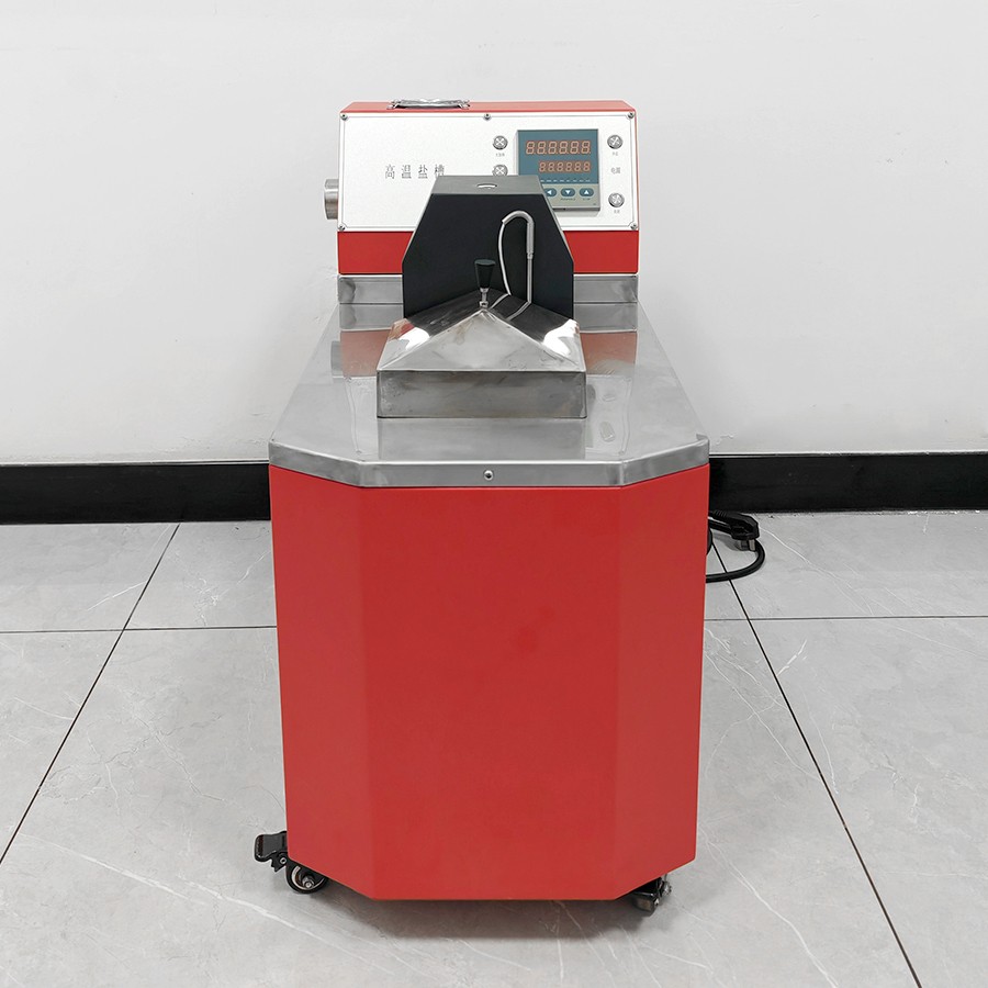產(chǎn)品采用先進(jìn)的自動(dòng)控制系統(tǒng),界面友好,操作方便,控制精度高。主要是由加熱系統(tǒng)、控溫系統(tǒng)、攪拌系統(tǒng)所組成。槽體分混合區(qū)與工作區(qū)。在混合區(qū)內(nèi)由加熱器產(chǎn)生的熱量使槽內(nèi)固態(tài)鹽(介質(zhì))升溫熔化成鹽液,當(dāng)鹽液溫度上升到接近設(shè)定溫度時(shí),控溫系統(tǒng)根據(jù)感溫器測(cè)得的溫度來控制加熱器工作,再經(jīng)過攪拌系統(tǒng)的強(qiáng)烈攪拌充分均勻后的鹽液(介質(zhì))送入少受外界干擾的工作區(qū)。從而得到一個(gè)溫度穩(wěn)定溫場(chǎng)均勻的液體空間。