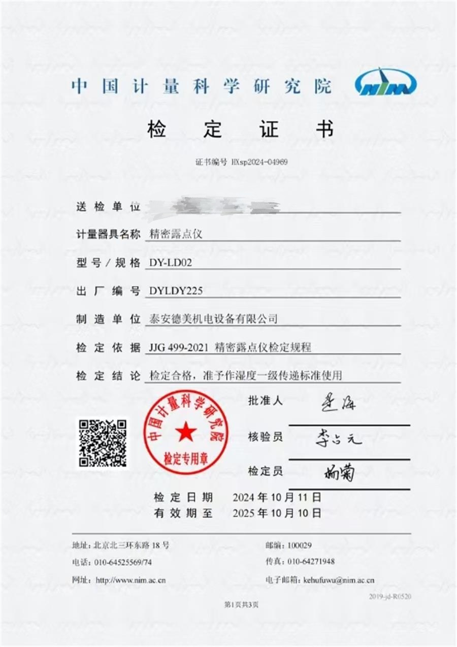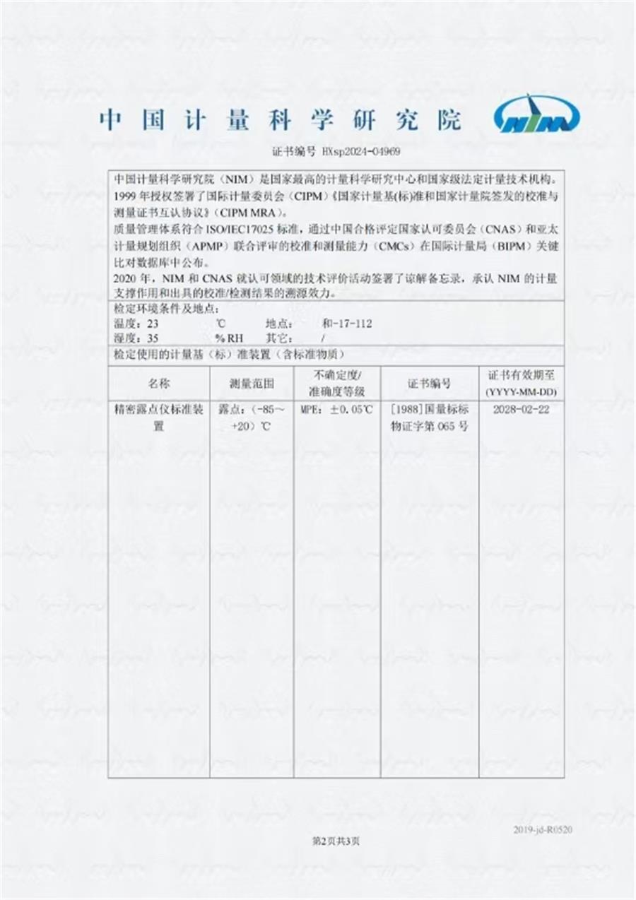 露點儀檢定證書 2024-11-6 本文被閱讀 7034 次