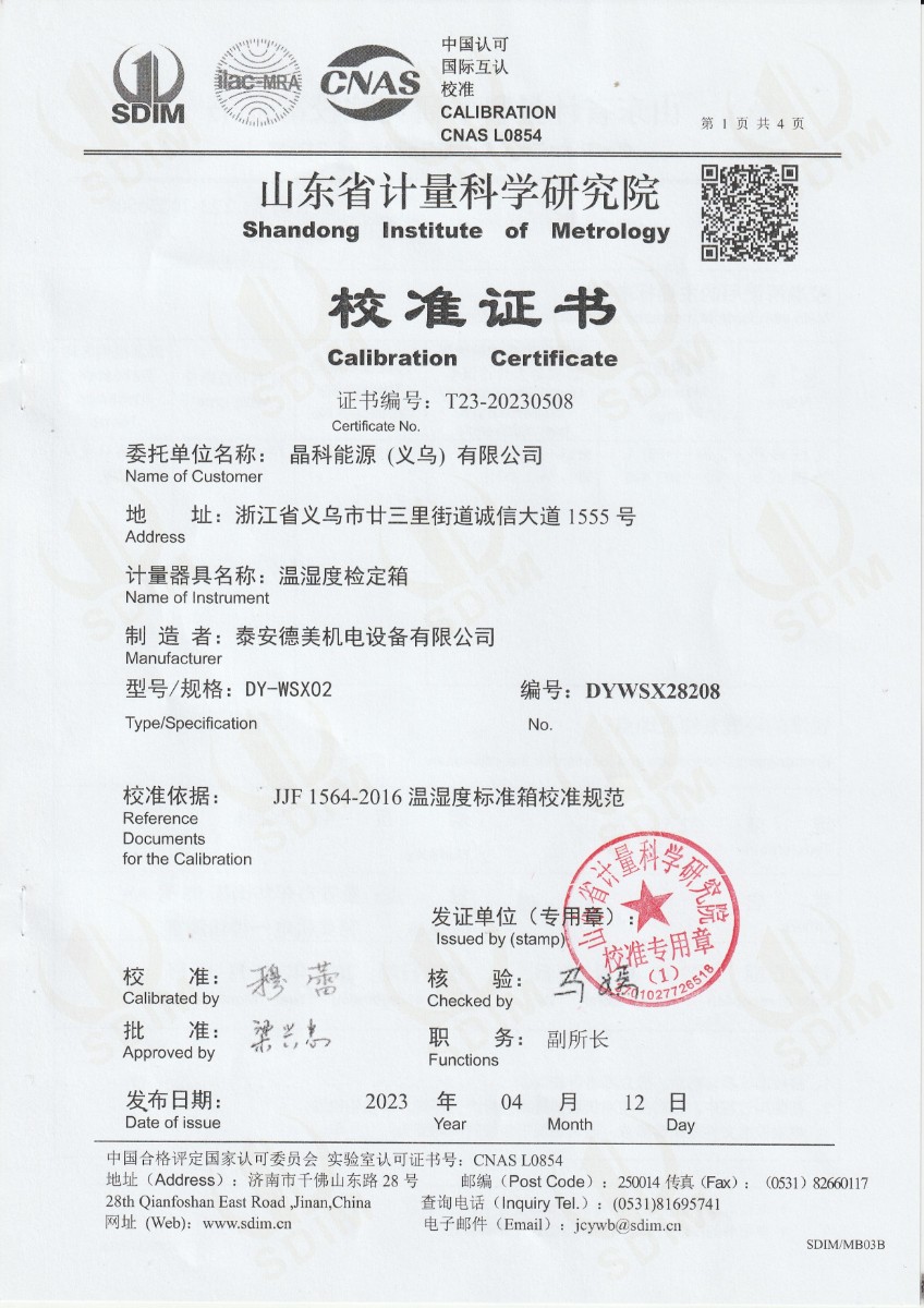 | 上一條:晶科能源(義烏)有限公司 精密露點(diǎn)儀(溫度)校準(zhǔn)證書 | 下一條:中溫面源黑體爐-校準(zhǔn)證書 |
