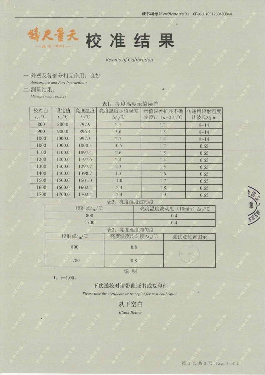 無錫英菲感知技術(shù)有限公司 高溫黑體 校準(zhǔn)證書 (2)