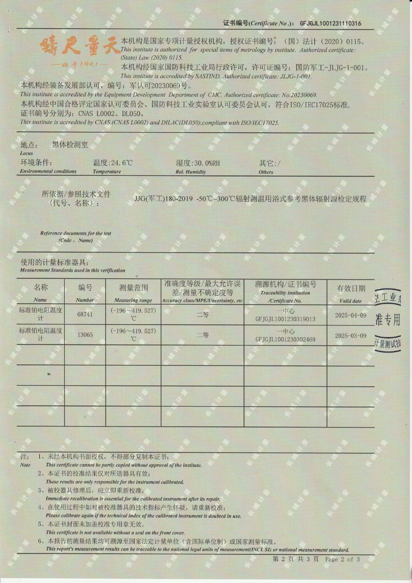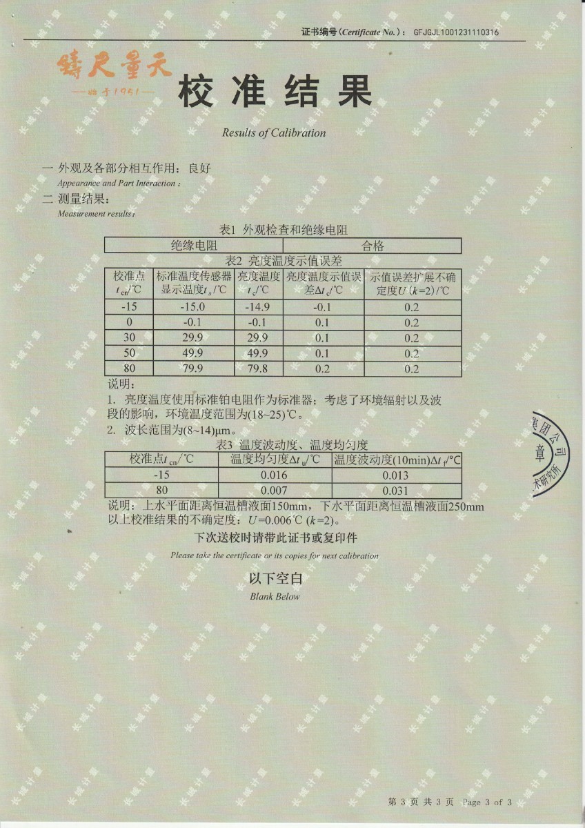 黑體輻射源校準證書DYHT1194 2023-12-4 本文被閱讀 10533 次