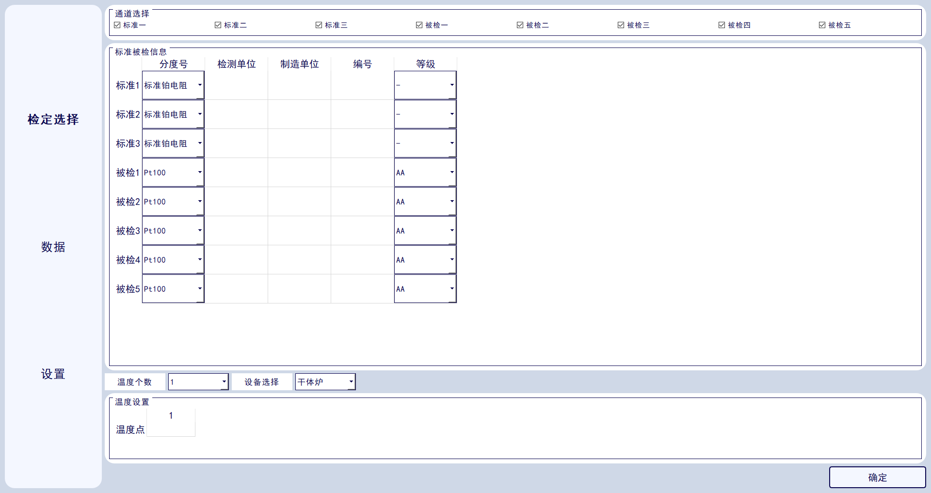 10.設(shè)備可配套干體爐、標(biāo)準(zhǔn)傳感器、備檢傳感器,配備可實現(xiàn)小型上位機(jī)設(shè)置,實時控制干體爐溫度設(shè)置、被檢標(biāo)準(zhǔn)器、被檢傳感器當(dāng)前溫度值、電阻值、波動度曲線。