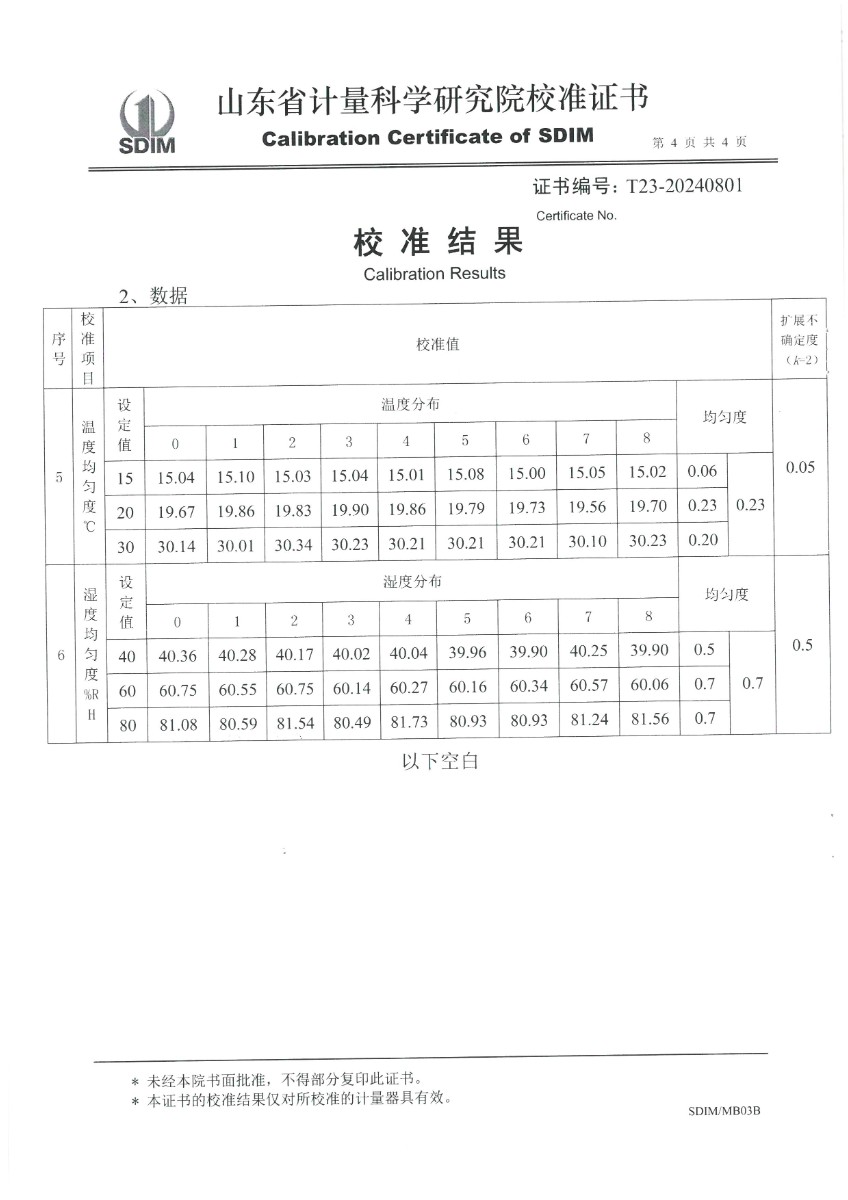 溫濕度檢定箱校準證書 2024-5-11 本文被閱讀 8291 次