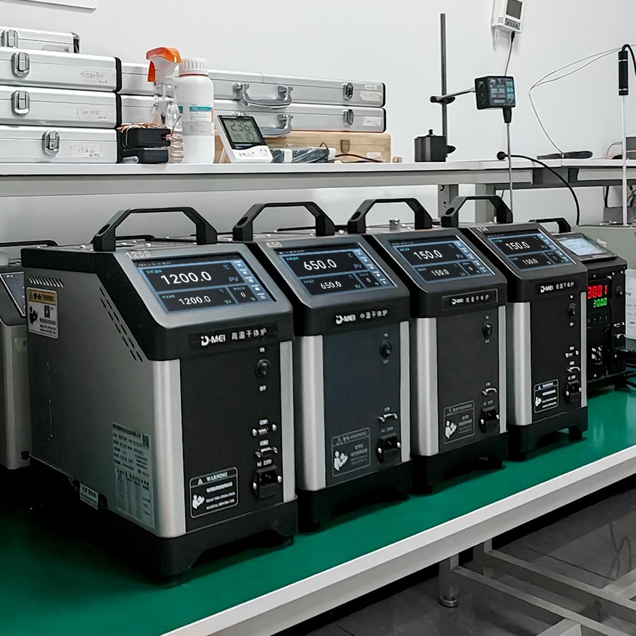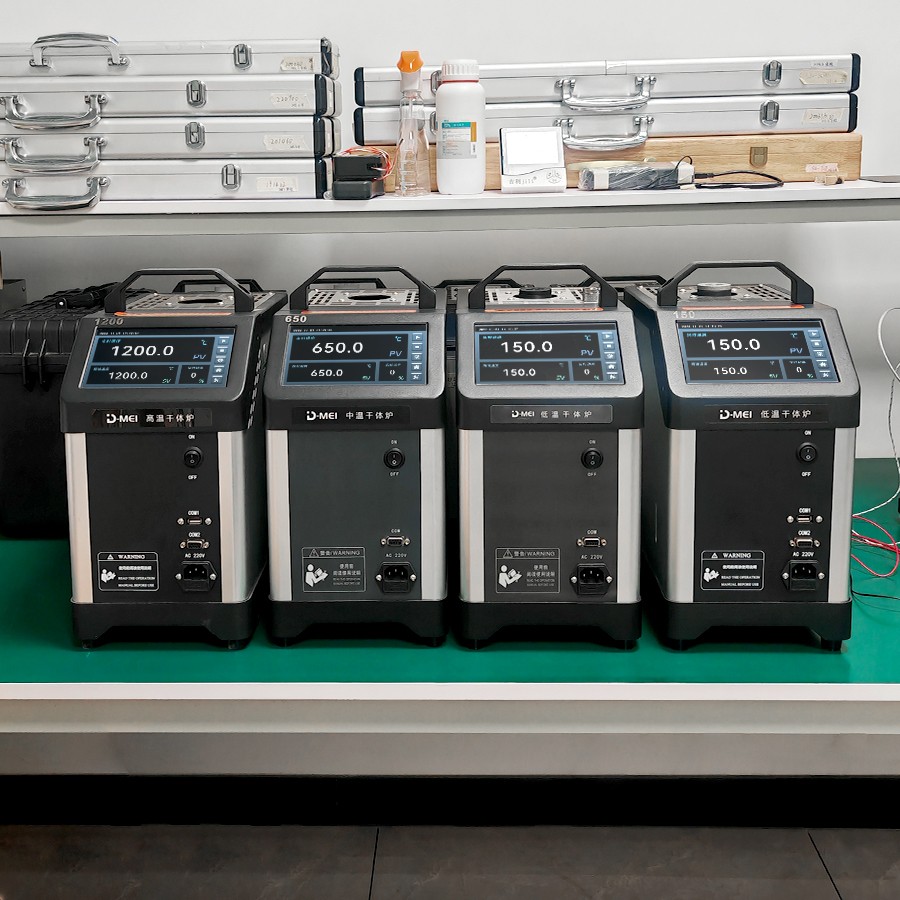 干體爐能夠提供一個穩(wěn) 定的、均勻的、準確的溫度環(huán)境(溫場),提供了類似于恒溫槽(液浴槽)的性能,但是干體爐卻攜帶方便,不需要放置液體。干體爐到達預(yù)定溫度點并且溫度穩(wěn) 定的時間比恒溫槽快5到10倍,這樣可以大大節(jié)省校準人員的時間,提高溫度檢定速度。干體爐的便攜性使其能夠到現(xiàn)場進行校準工作,從而解決了恒溫槽在運輸移動上的困難。 通過干體爐可以方便地校準溫度傳感器、水銀溫度計、膨脹式溫度計、熱電偶、熱電阻、等溫度傳感器。