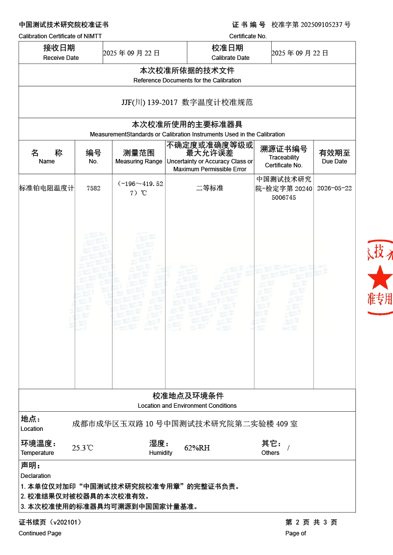 高精度數(shù)字溫度計(-20-100℃)校準證書 2025-9-27 本文被閱讀 2641 次