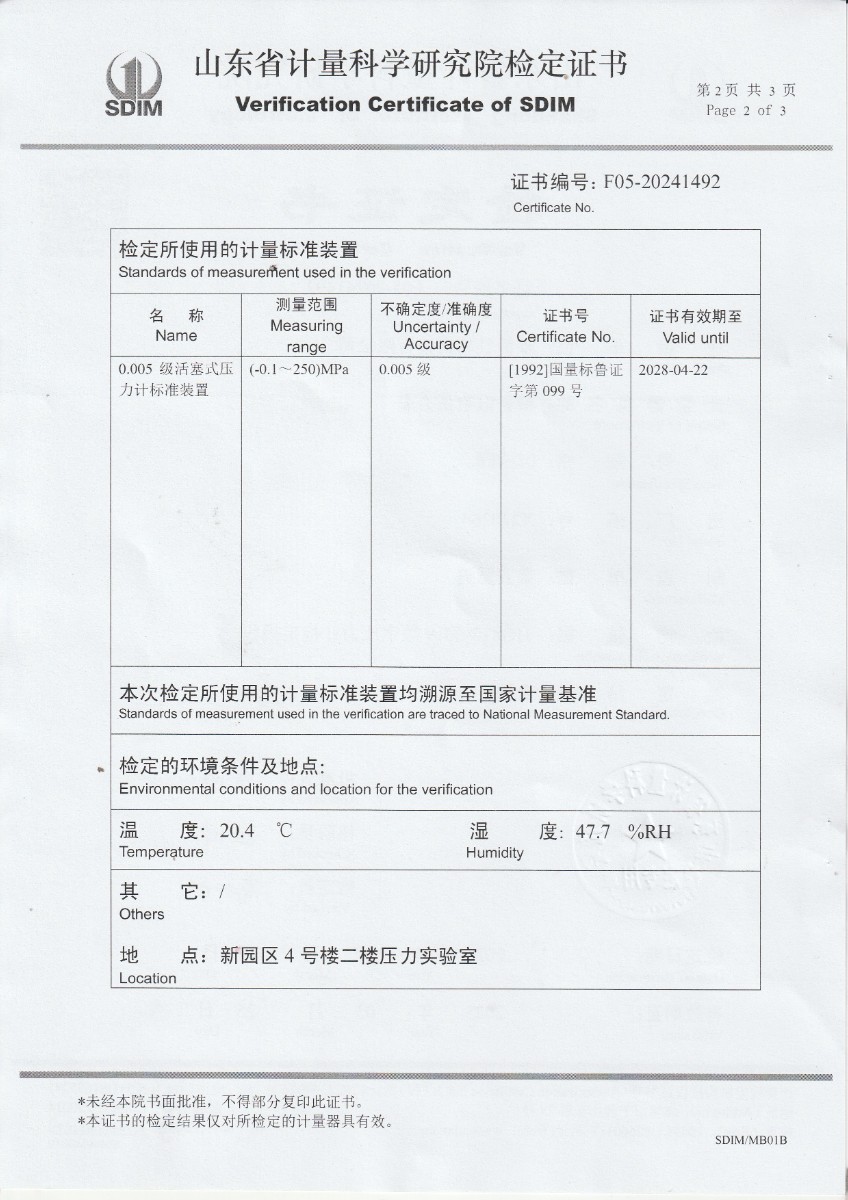 數(shù)字壓力表檢定證書 2024-4-11 本文被閱讀 7214 次