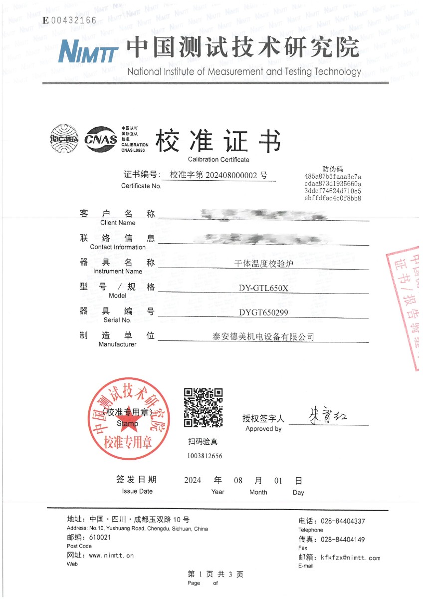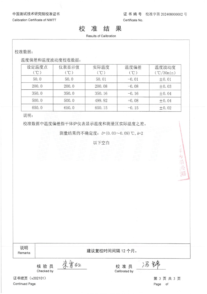 干體爐299(室溫+5℃~650℃)校準證書 2024-8-5 本文被閱讀 7057 次