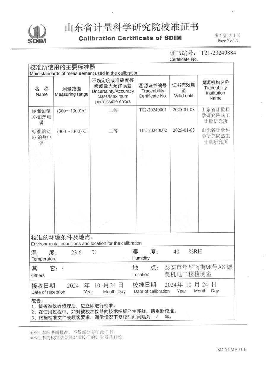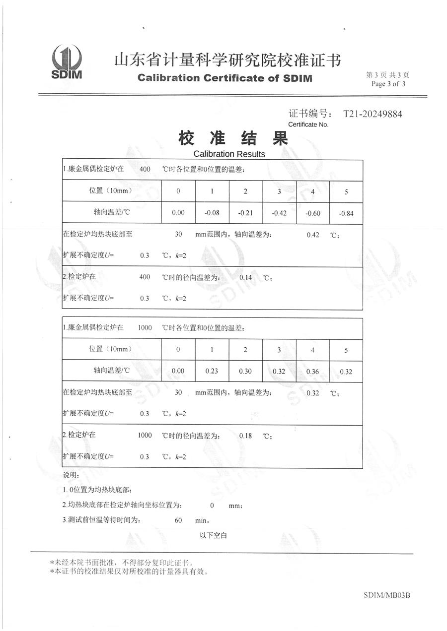 廉金屬熱電偶檢定爐(300-1200℃)校準證書 2024-11-2 本文被閱讀 7051 次
