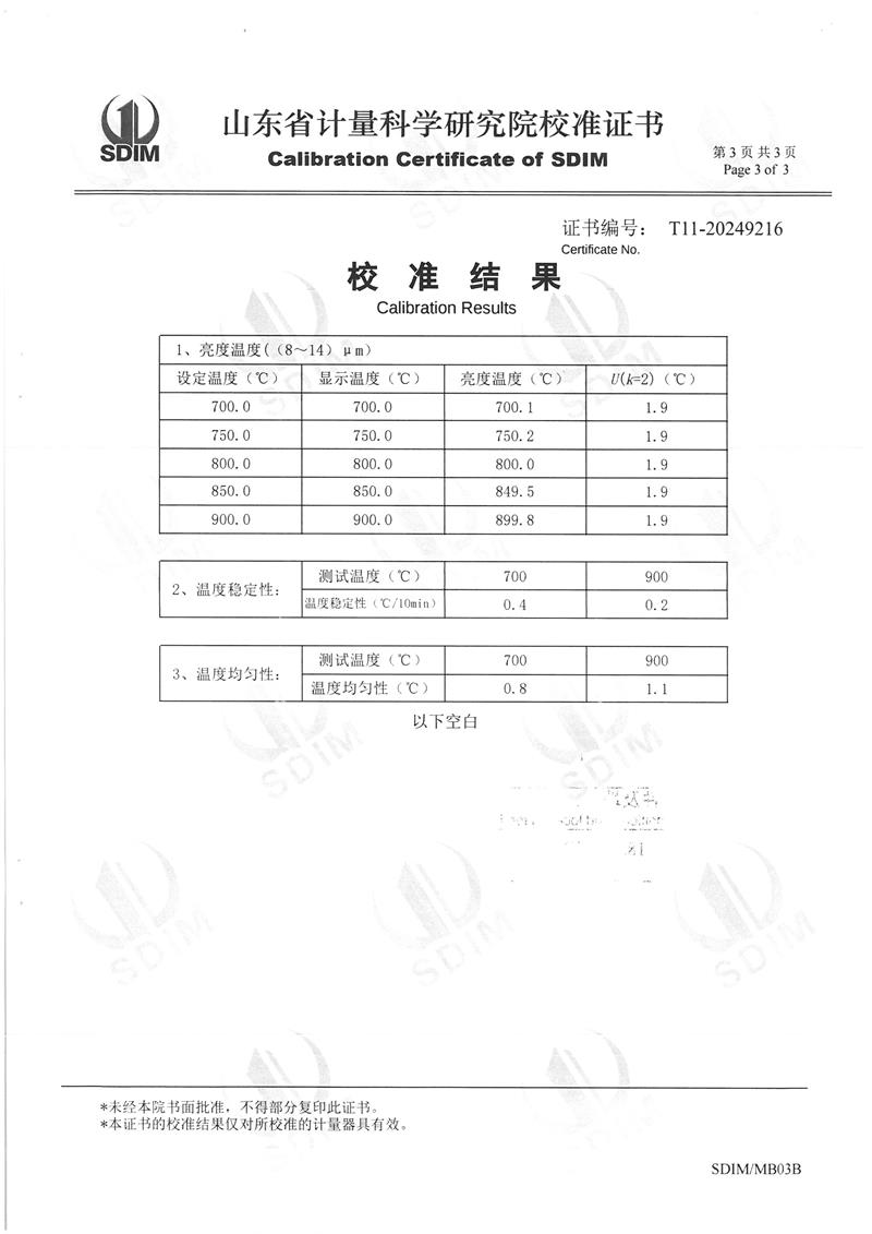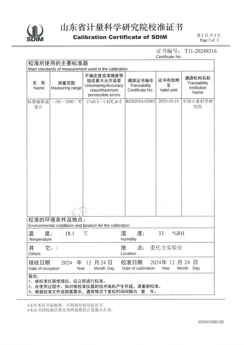 高溫黑體爐(300℃~1200℃)校準(zhǔn)證書 2025-1-25 本文被閱讀 7609 次