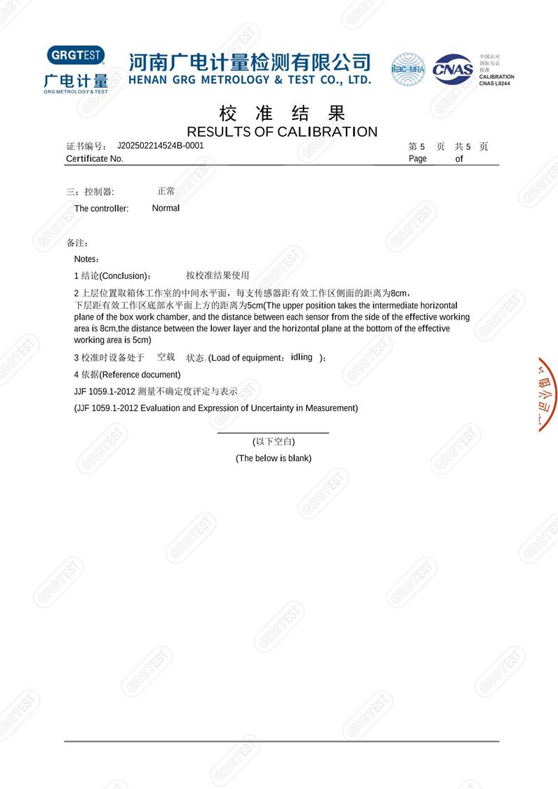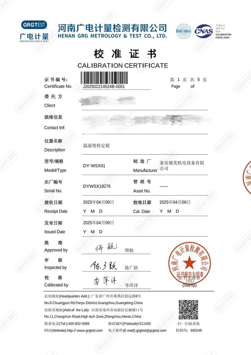 溫濕度檢定箱18276(-5~65℃)校準證書 2025-4-18 本文被閱讀 3651 次