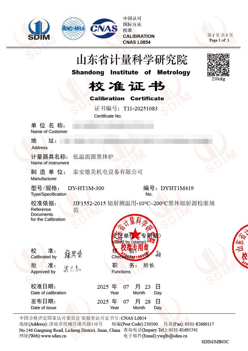 低溫面源黑體爐(0-60℃)校準(zhǔn)證書 2025-7-28 本文被閱讀 3243 次