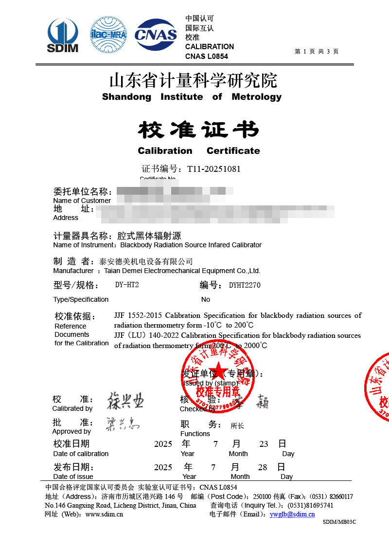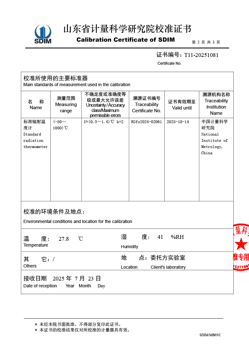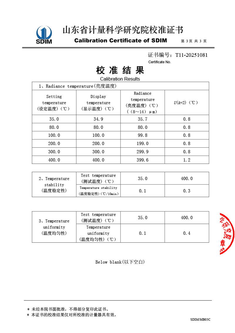 腔式黑體輻射源(室溫+5-400℃)校準(zhǔn)證書 2025-7-29 本文被閱讀 3072 次