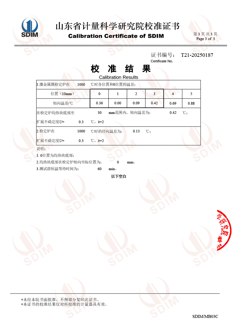 廉金屬熱電偶檢定爐(300-1200℃)校準證書 2025-7-31 本文被閱讀 3303 次