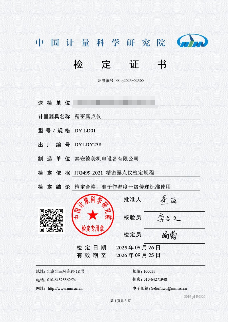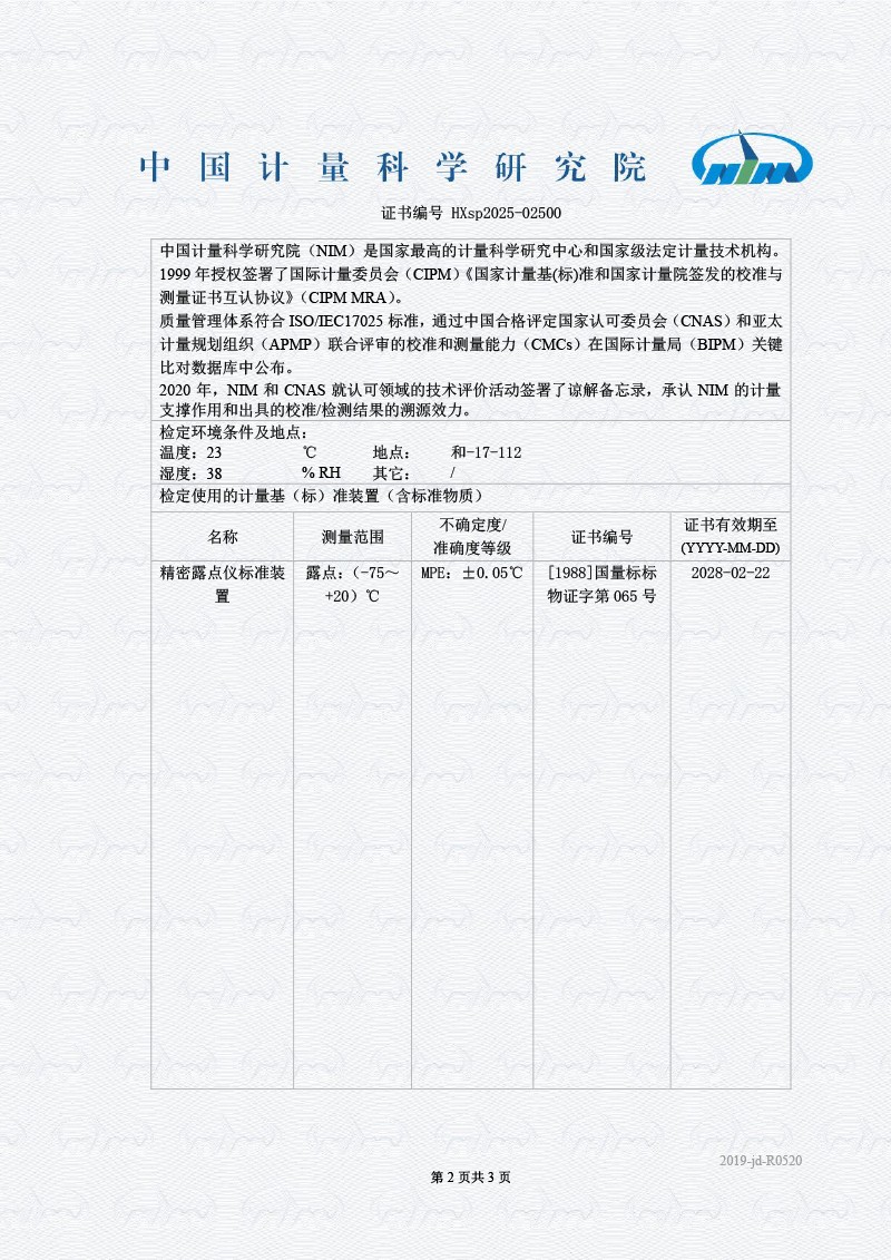 露點儀檢定證書