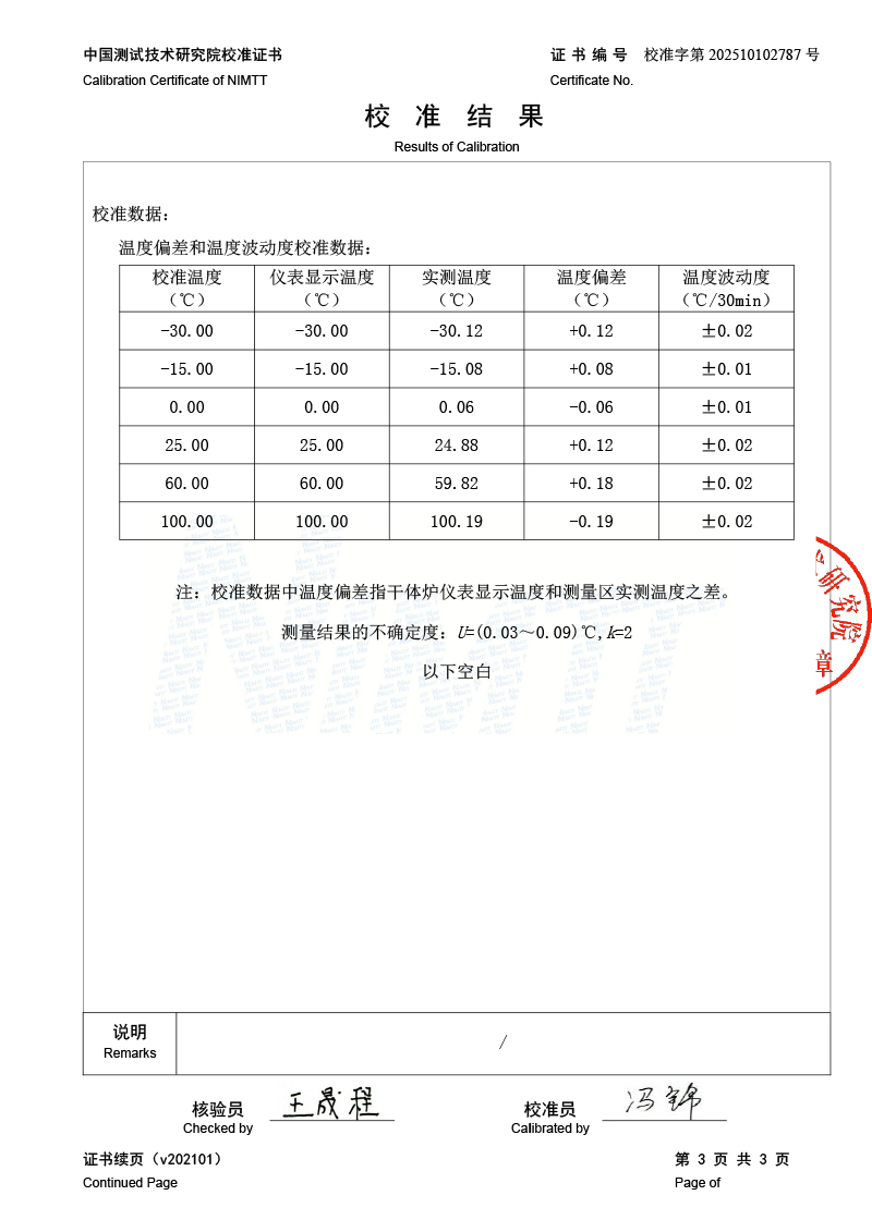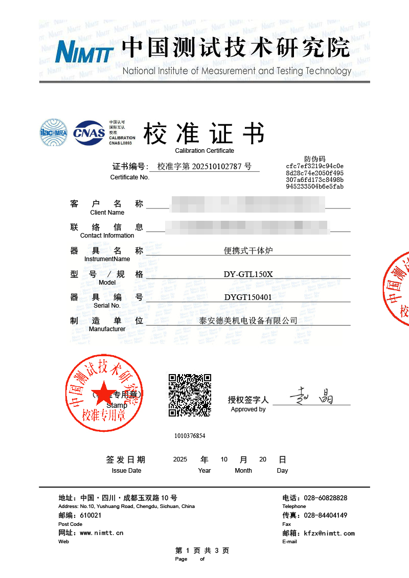 便攜式干體爐(-30-150℃)校準證書 2025-10-21 本文被閱讀 2127 次
