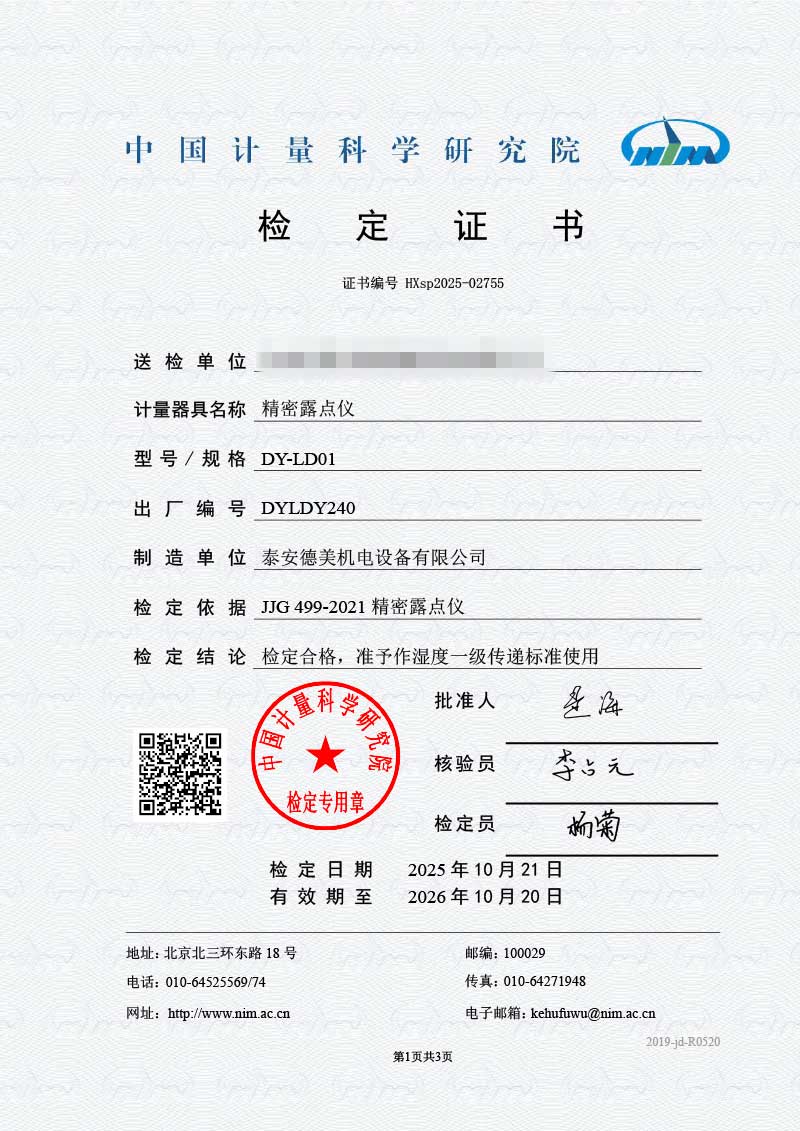 露點儀檢定證書 2025-10-30 本文被閱讀 1669 次