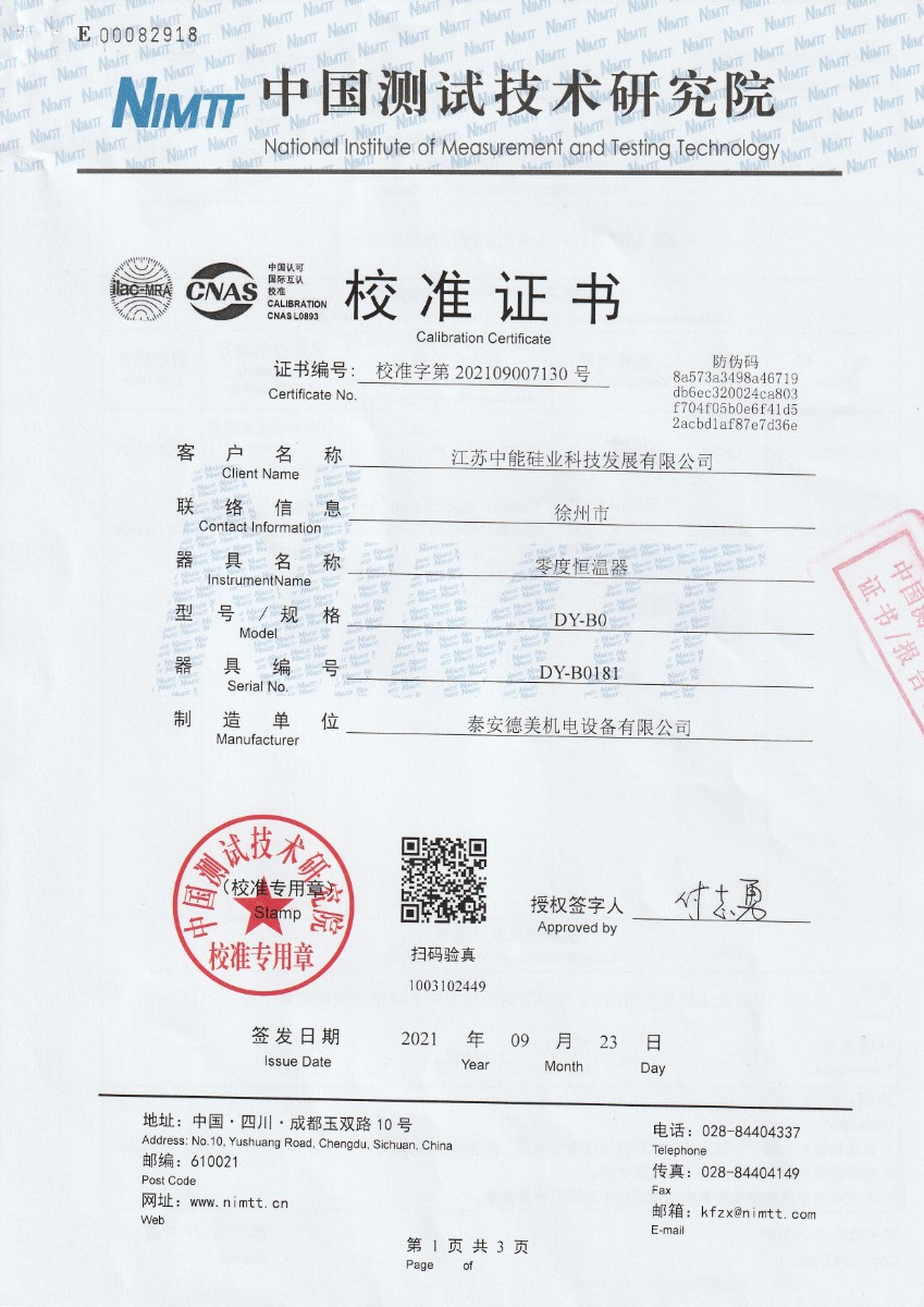 | 上一條:江蘇中能硅業(yè)科技發(fā)展有限公司-S分度補(bǔ)償導(dǎo)線 | 下一條:制冷恒溫槽-校準(zhǔn)證書(shū) |