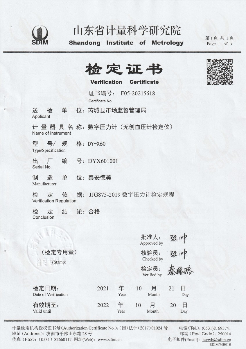 芮城縣市場監(jiān)督管理局-數(shù)字壓力計(無創(chuàng)血壓計檢定儀) 2021-10-23 本文被閱讀 15317 次