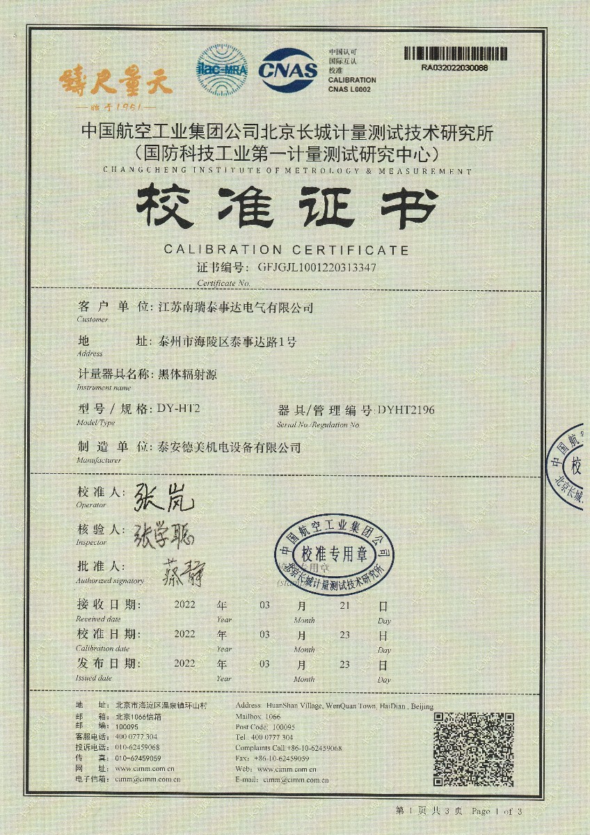 江蘇南瑞泰事達電氣有限公司-黑體輻射源 2022-3-29 本文被閱讀 16119 次