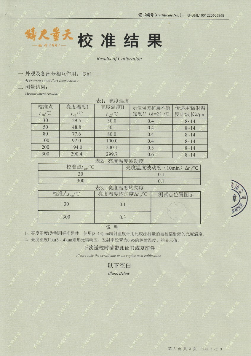 | 上一條:中睿(天津)檢驗(yàn)檢測有限公司-冷鏡式露點(diǎn)儀檢定證書 | 下一條:中溫面源黑體爐-校準(zhǔn)證書 |