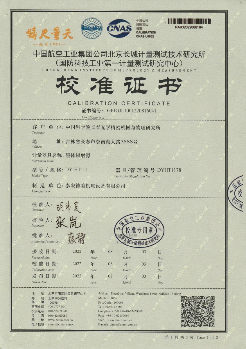 | 上一條:晶科能源(金昌)公司-黑體輻射源 | 下一條:中溫面源黑體爐-校準(zhǔn)證書 |