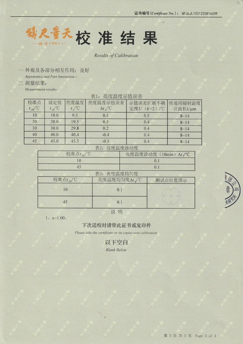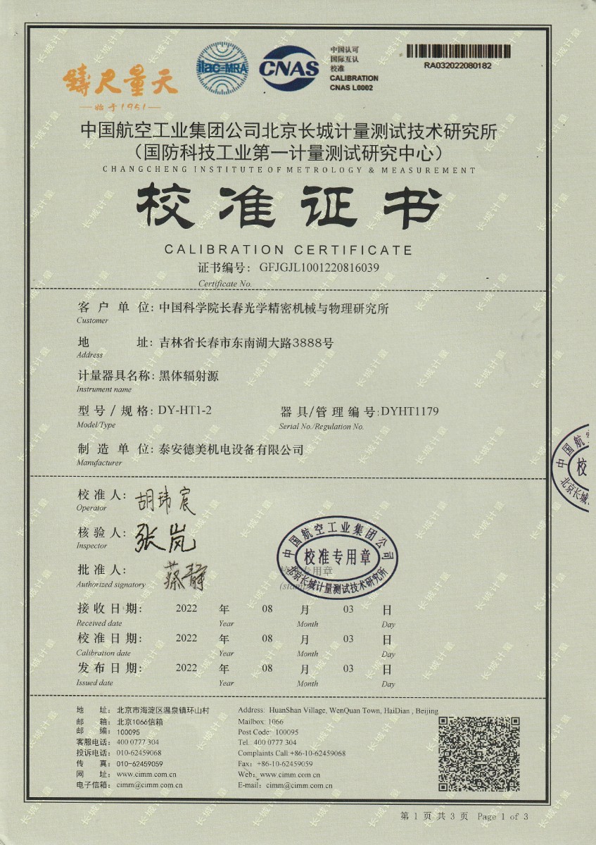 | 上一條:中國科學(xué)院長春光學(xué)精密機(jī)械與物理研究所-黑體爐DY-HT1-1 | 下一條:中溫面源黑體爐-校準(zhǔn)證書 |