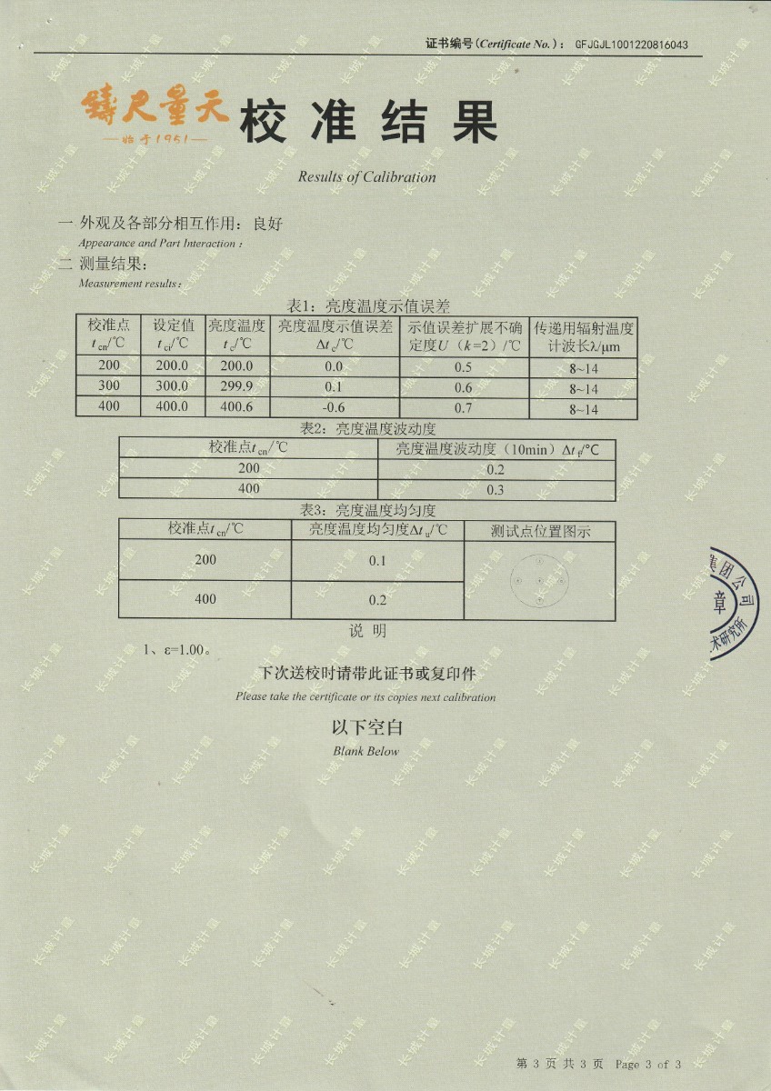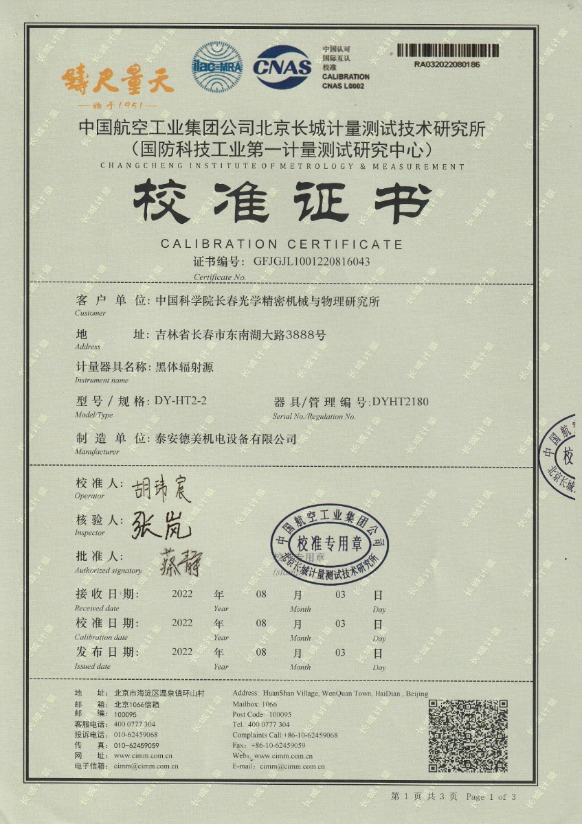 | 上一條:中國科學(xué)院長春光學(xué)精密機(jī)械與物理研究所-黑體爐DY-HT2-1 | 下一條:中溫面源黑體爐-校準(zhǔn)證書 |