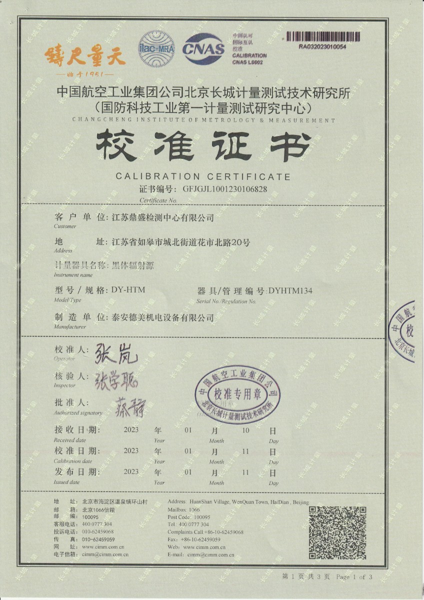 江蘇鼎盛檢測有限公司 黑體輻射源 2023-1-28 本文被閱讀 13266 次