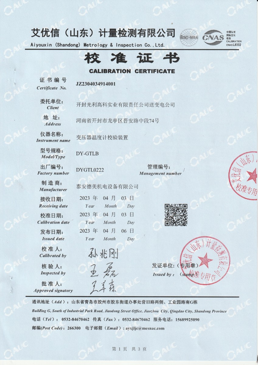 | 上一條:中財鋰膜(南京)有限公司 中溫干體爐 校準證書 | 下一條:DY-GTL-XC智能干體爐/干體溫度校驗爐(電測) |