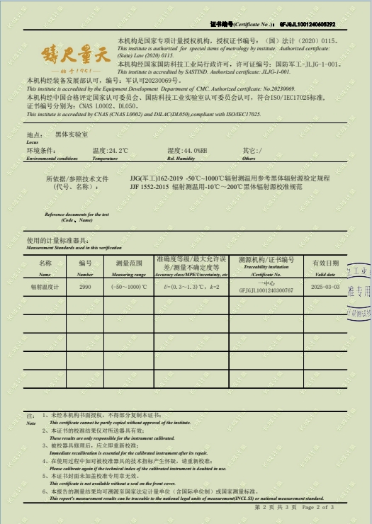 面源黑體輻射源(0-80℃)304所校準(zhǔn)證書 2024-6-18 本文被閱讀 9496 次