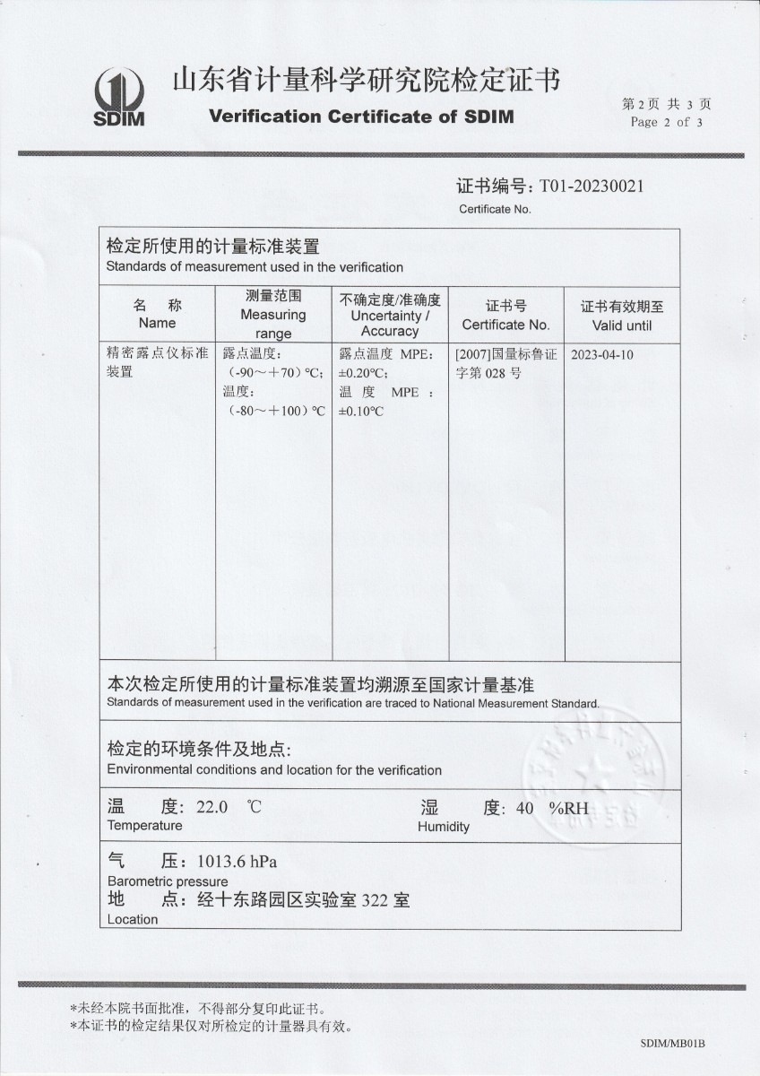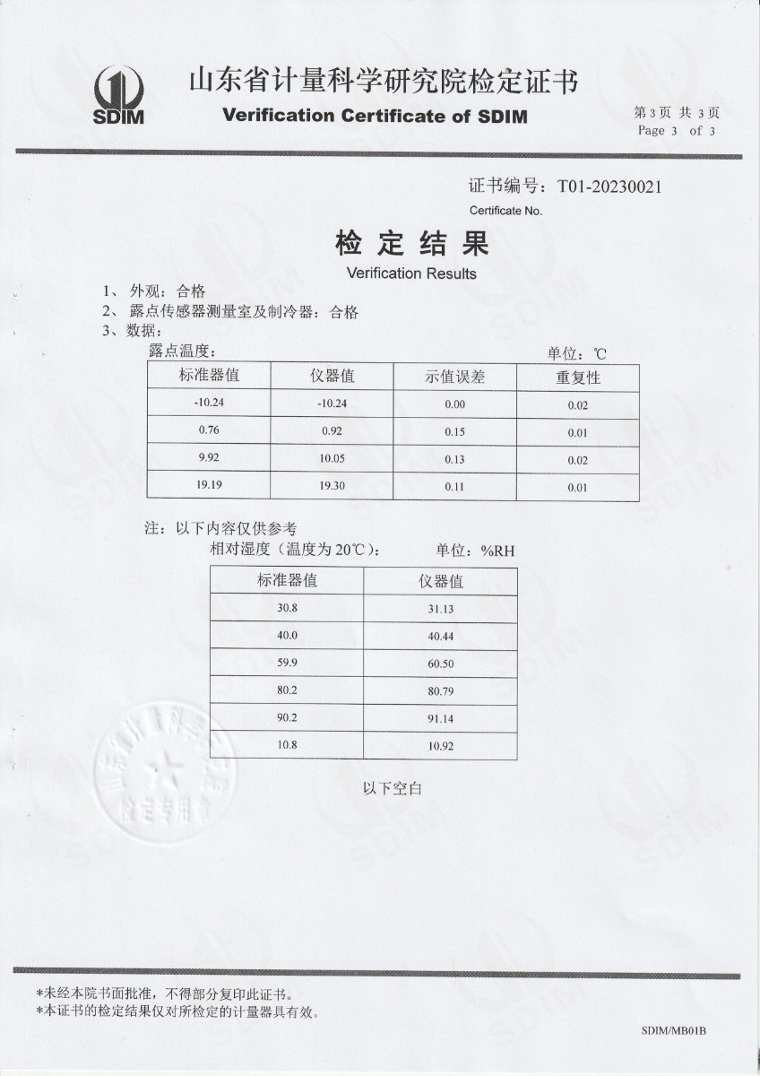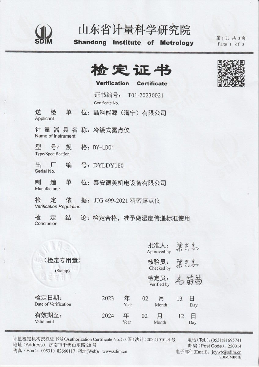 晶科能源(海寧)有限公司 冷鏡式露點儀 檢定證書 2023-2-25 本文被閱讀 14153 次