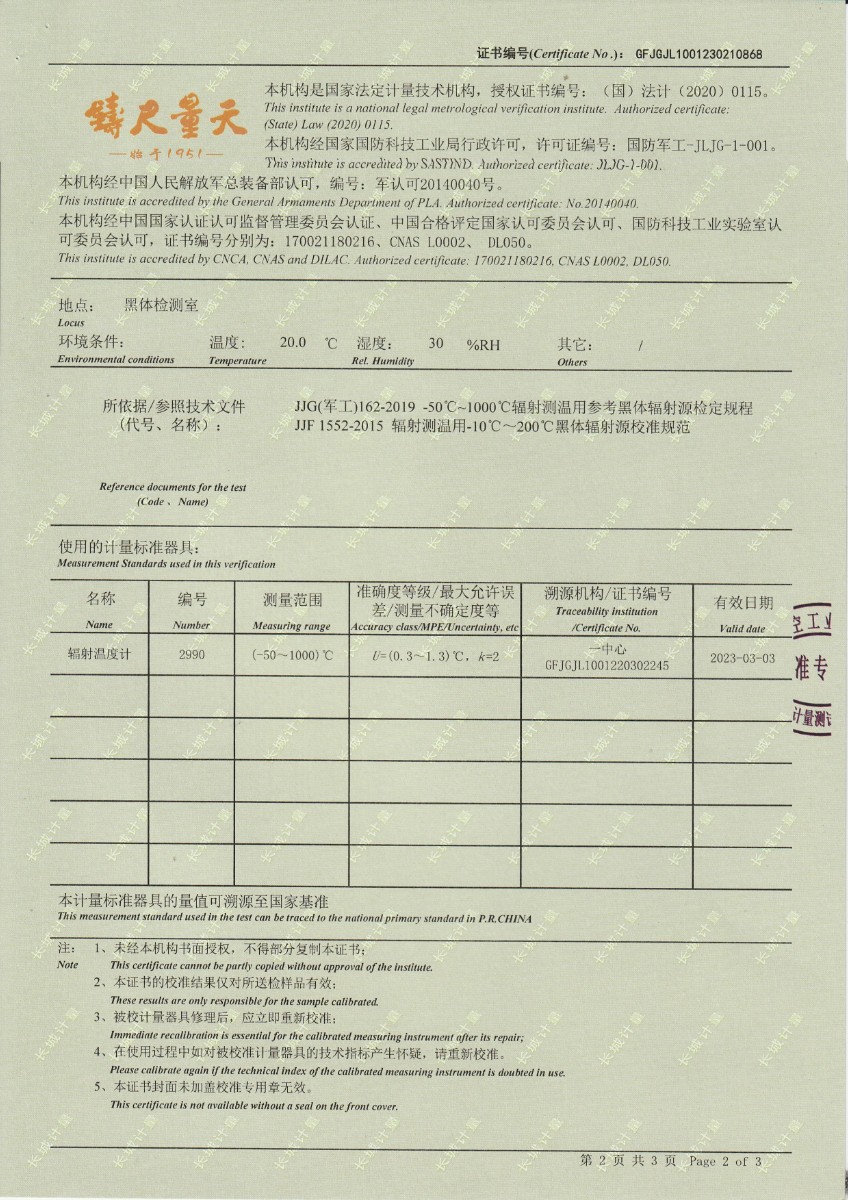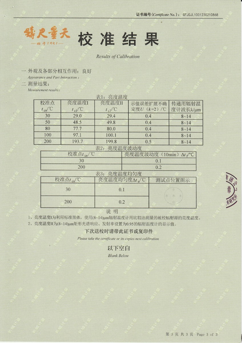 江蘇省產(chǎn)品質(zhì)量監(jiān)督檢驗研究院 黑體輻射源 校準證書 2023-2-25 本文被閱讀 11607 次