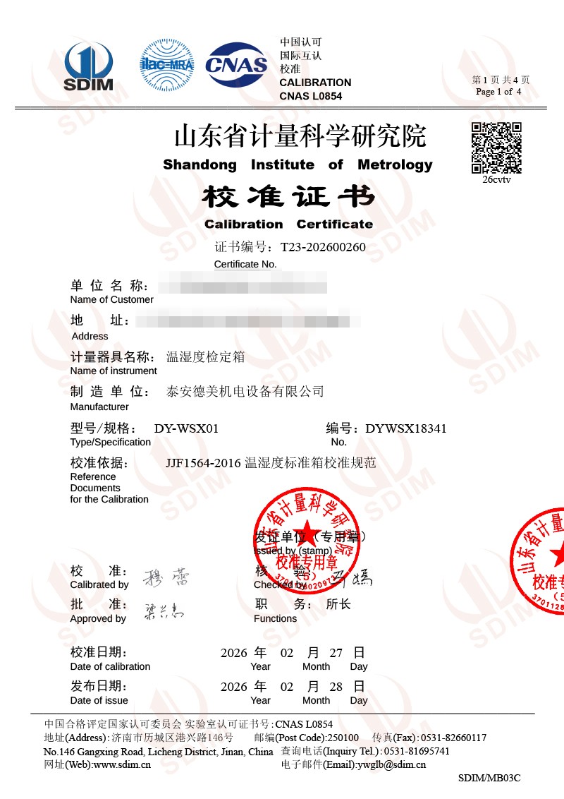 溫濕度檢定箱-校準(zhǔn)證書 2026-3-2 本文被閱讀 17 次