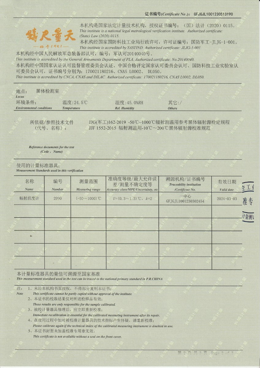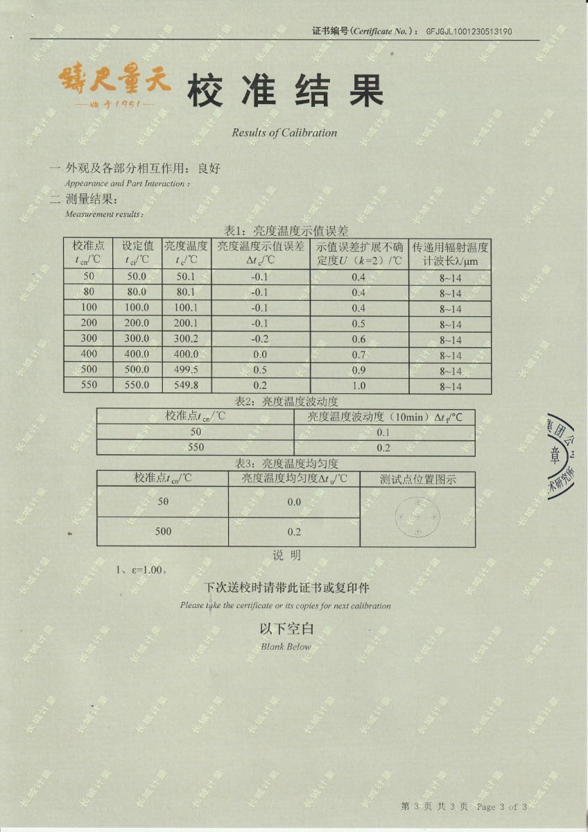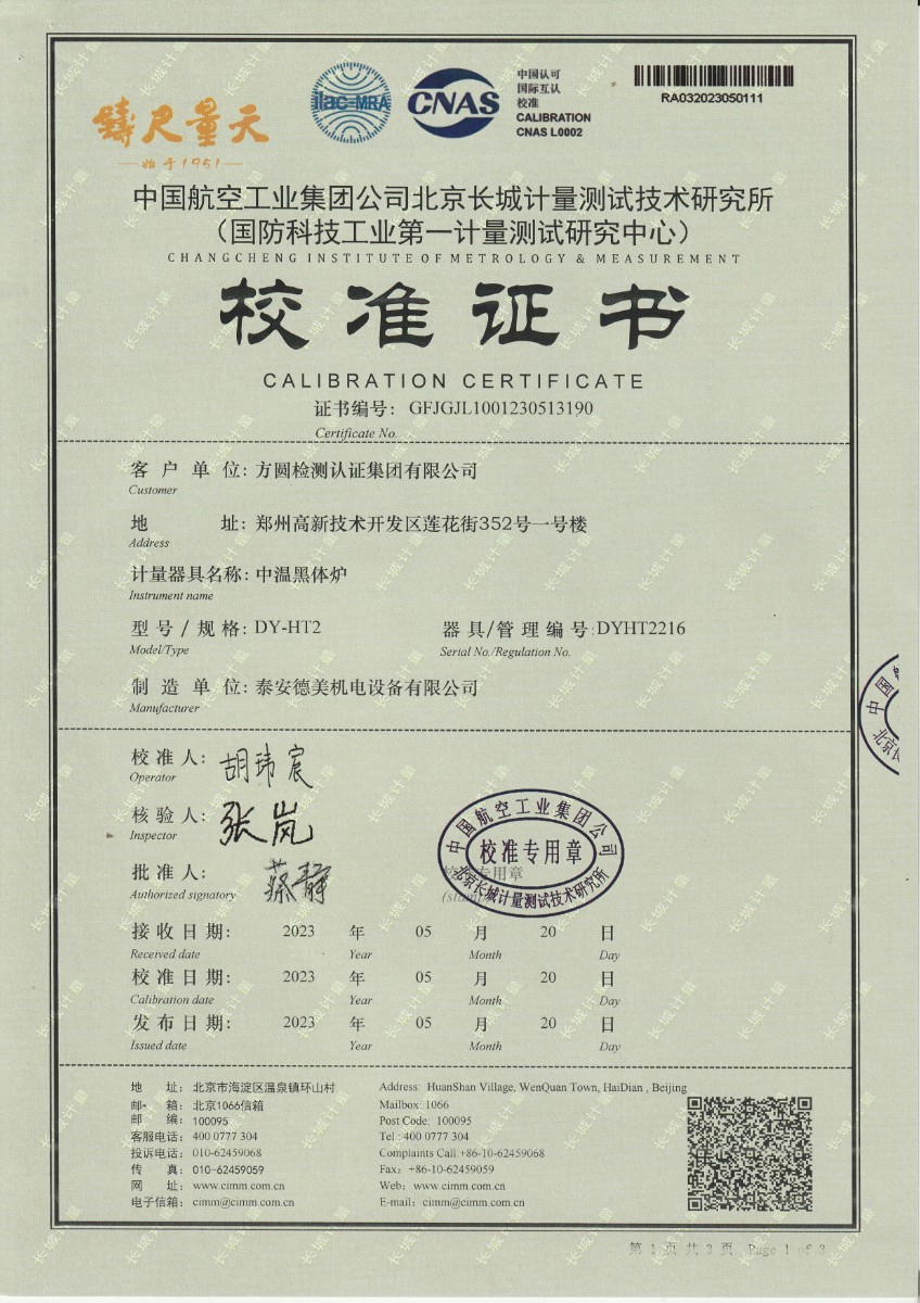 方圓檢測(cè)認(rèn)證集團(tuán)有限公司 中溫黑體校準(zhǔn)證書 2023-6-5 本文被閱讀 11924 次